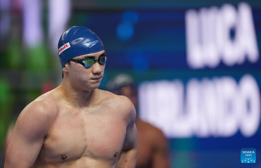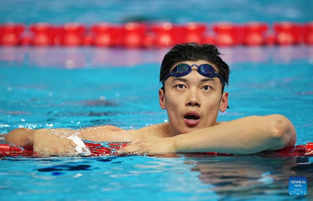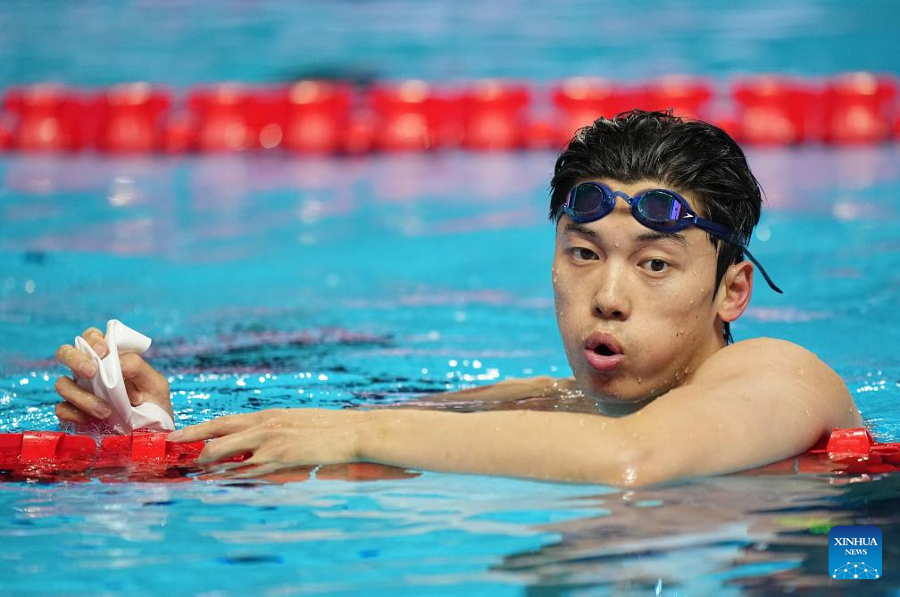 China's Wang Shun is seen after the men's 200m individual medley semifinal of swimming at the World Aquatics Championships in Singapore, July 30, 2025. (Xinhua/Xia Yifang)
