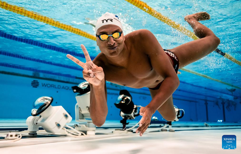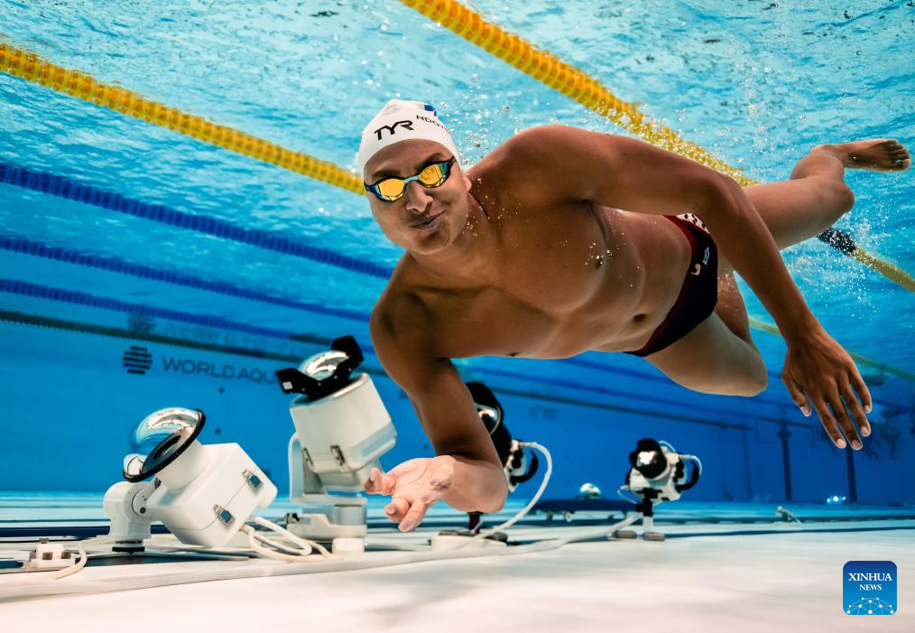 Yohann Ndoye-Brouard of France poses during a training session before the swimming finals at the World Aquatics Championships in Singapore, July 30, 2025. (Xinhua/Xia Yifang)