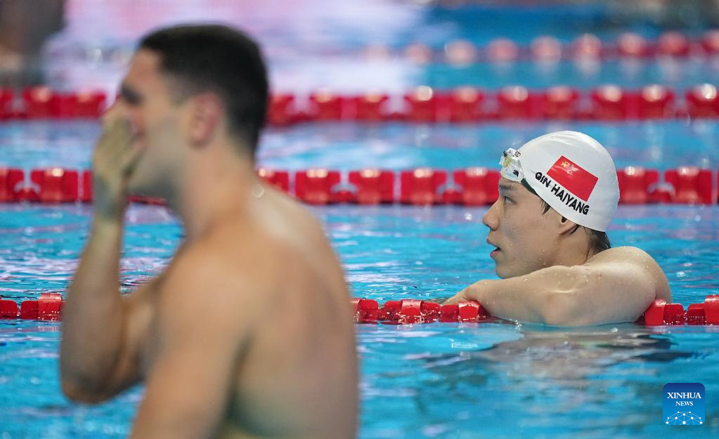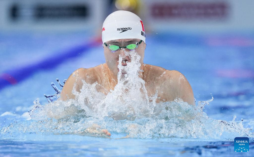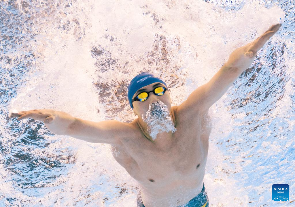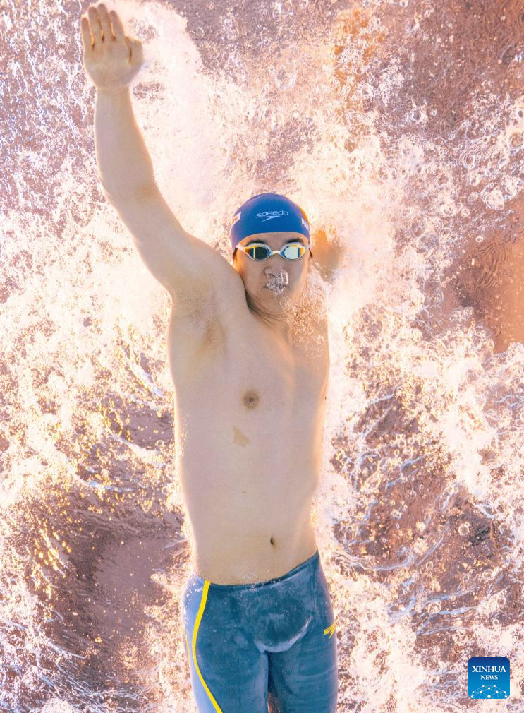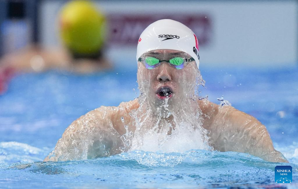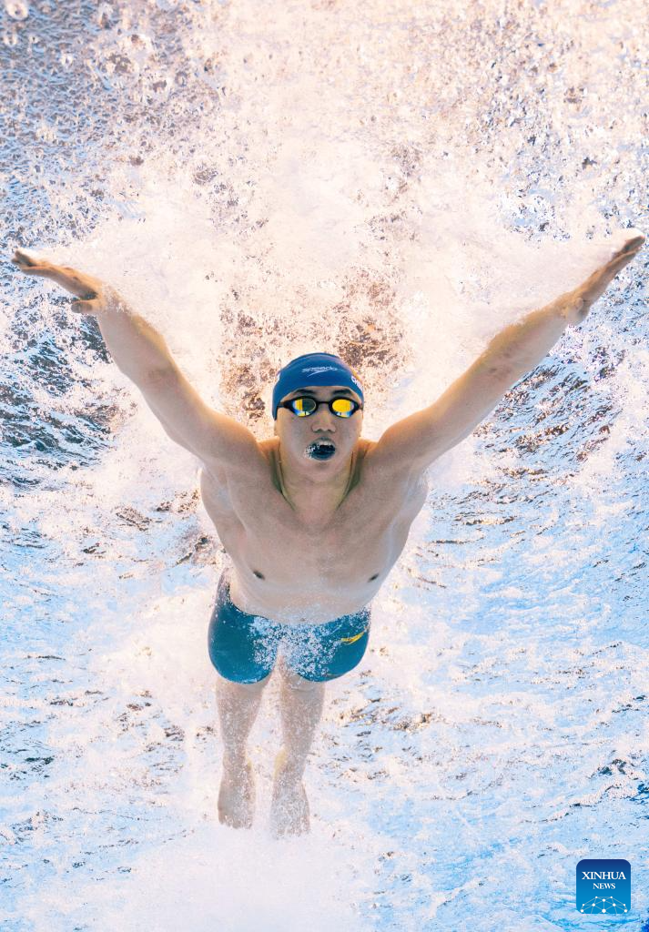 Team China's Qin Haiyang competes during the mixed 4x100m medley relay final of swimming at the World Aquatics Championships in Singapore, July 30, 2025. (Xinhua/Wu Zhizun)