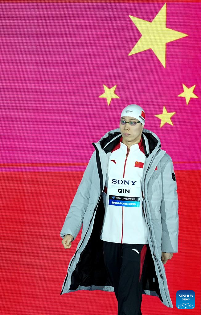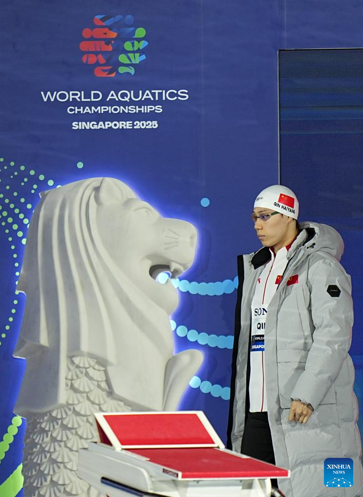 Qin Haiyang of China is seen before the men's 50m breaststroke final of swimming at the World Aquatics Championships in Singapore, July 30, 2025. (Xinhua/Xia Yifang)