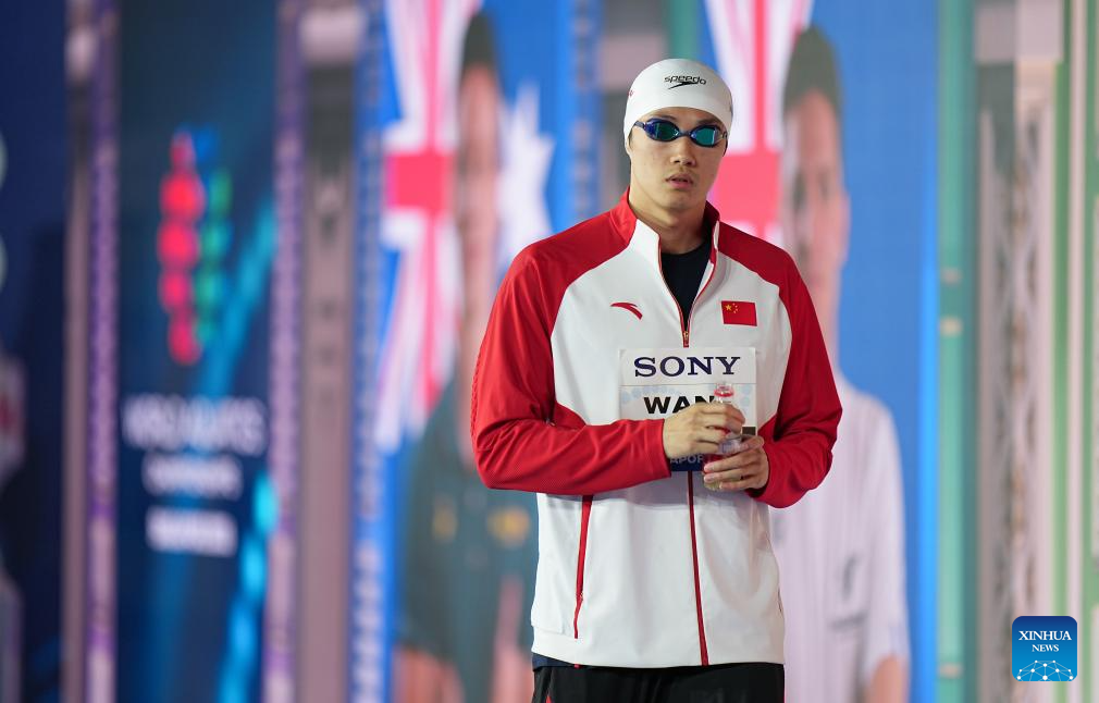 Wang Shun of China is seen before the men's 200m individual medley semifinal of swimming at the World Aquatics Championships in Singapore, July 30, 2025. (Xinhua/Wu Zhizun)