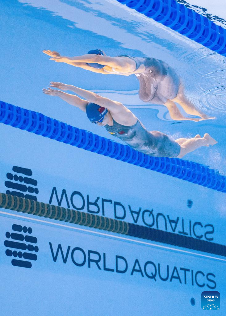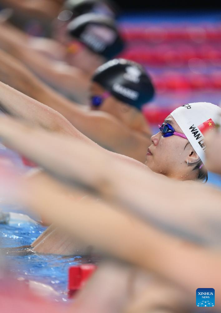 Wan Letian of China competes during the women's 50m backstroke semifinal of swimming at the World Aquatics Championships in Singapore, July 30, 2025. (Xinhua/Wu Zhizun)