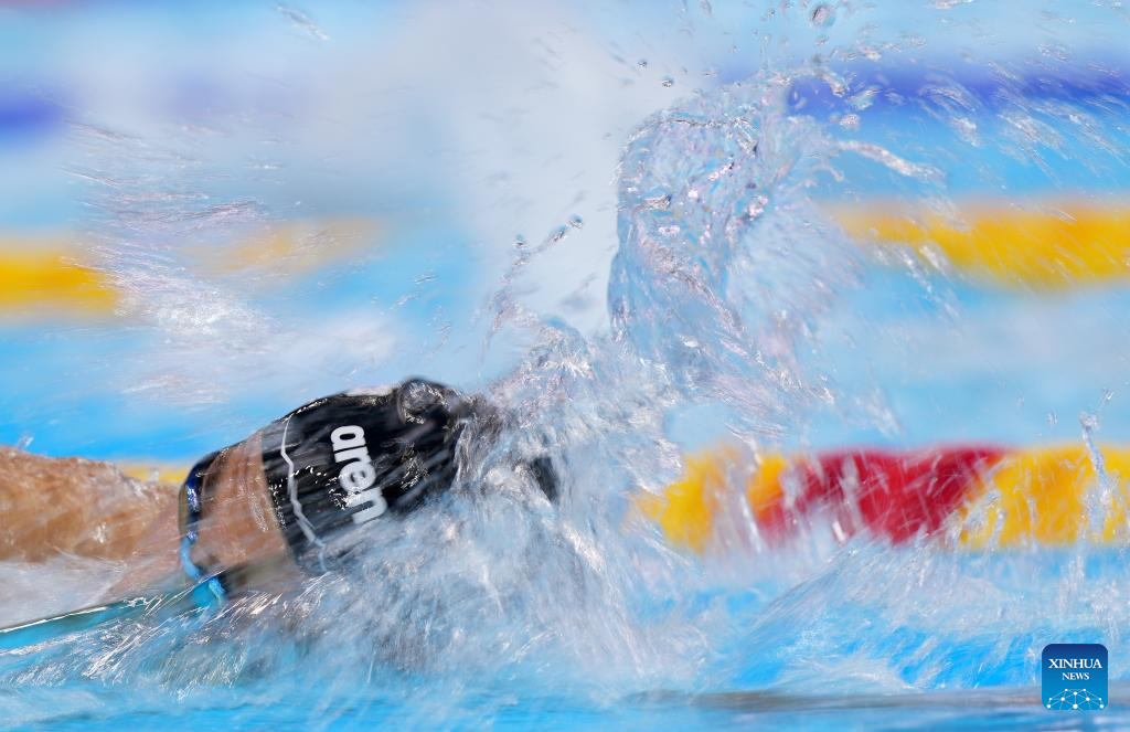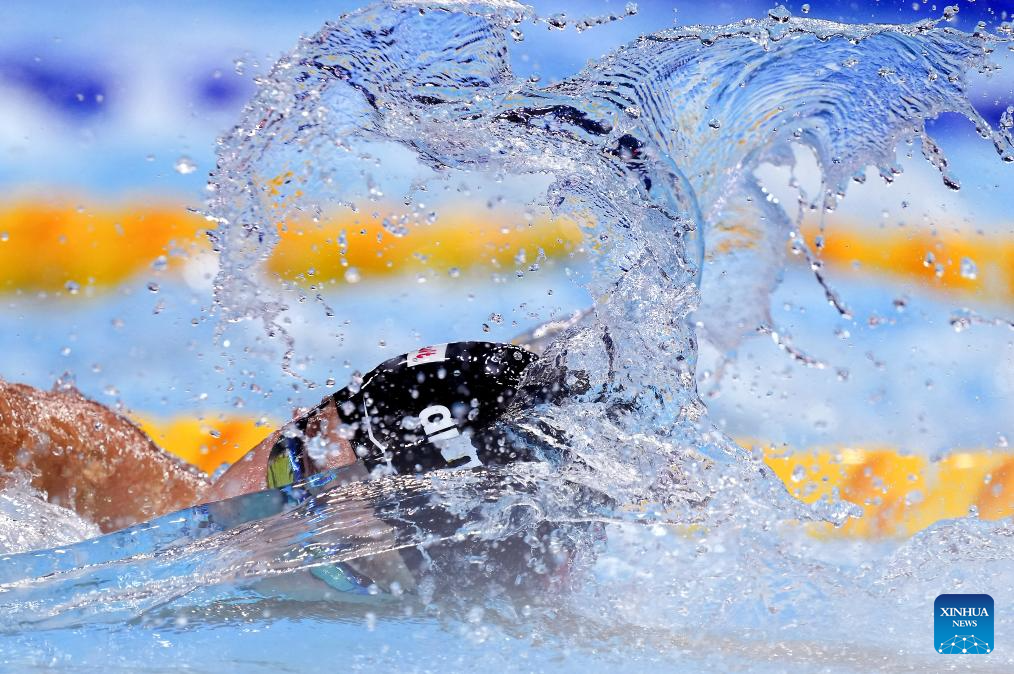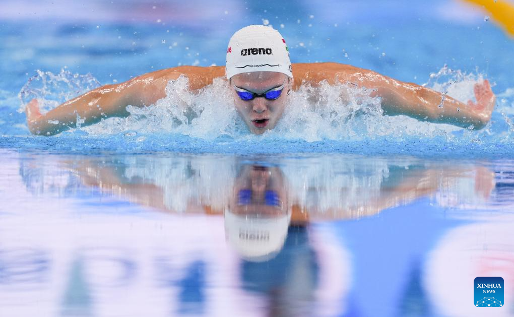 Hubert Kos of Hungary competes during the men's 200m individual medley semifinal of swimming at the World Aquatics Championships in Singapore, July 30, 2025. (Xinhua/Wu Zhizun)