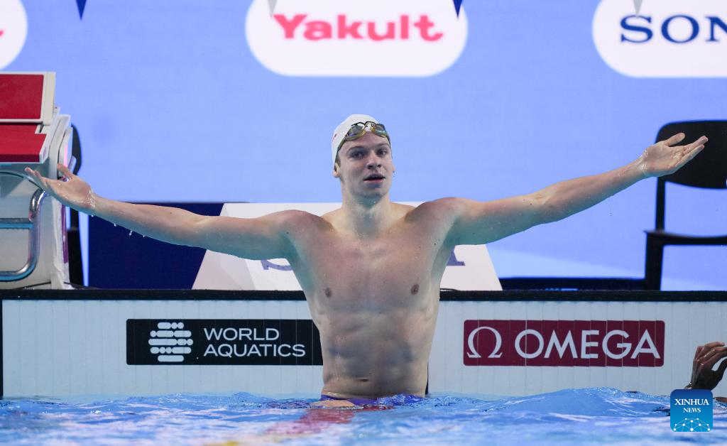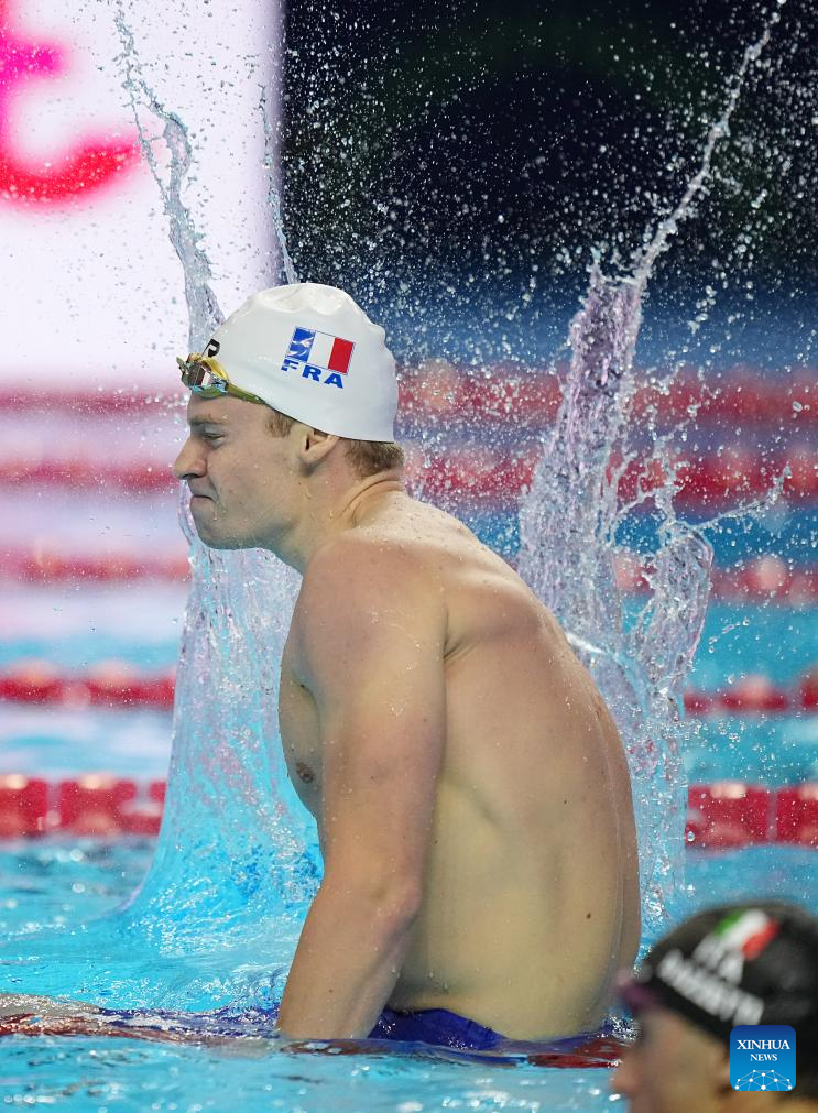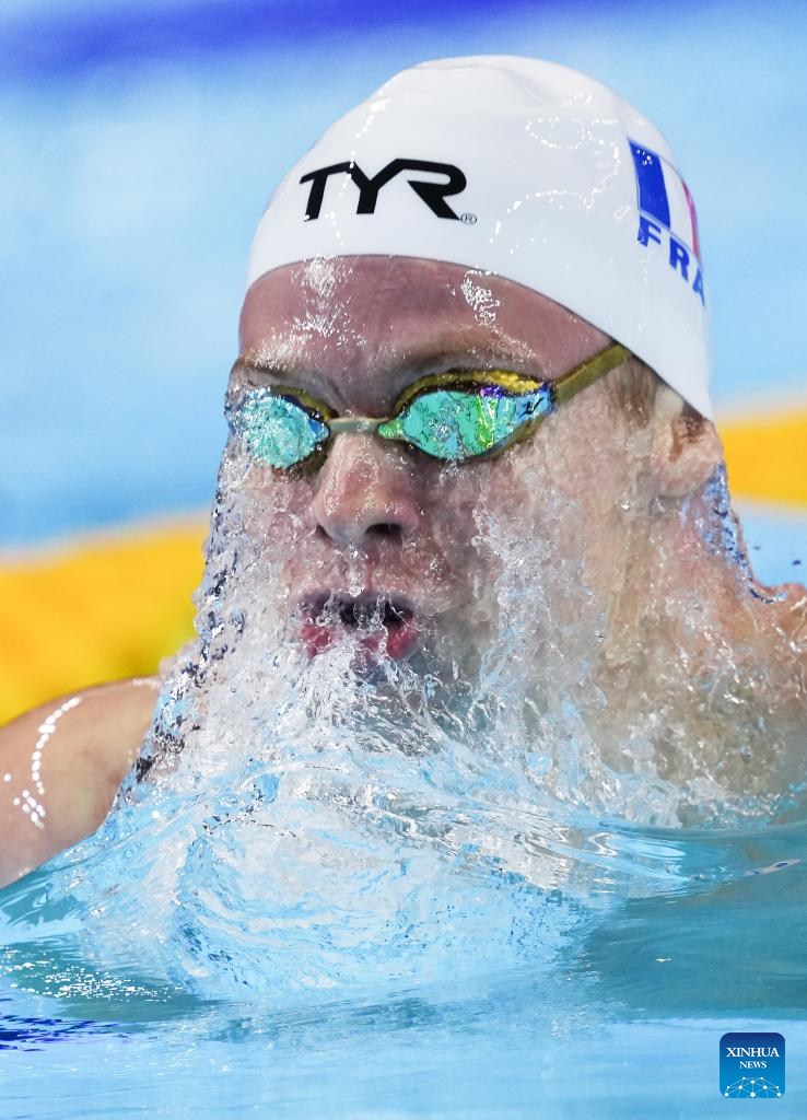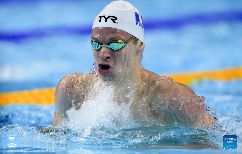Leon Marchand of France competes during the men's 200m individual medley semifinal of swimming at the World Aquatics Championships in Singapore, July 30, 2025. (Xinhua/Wu Zhizun)