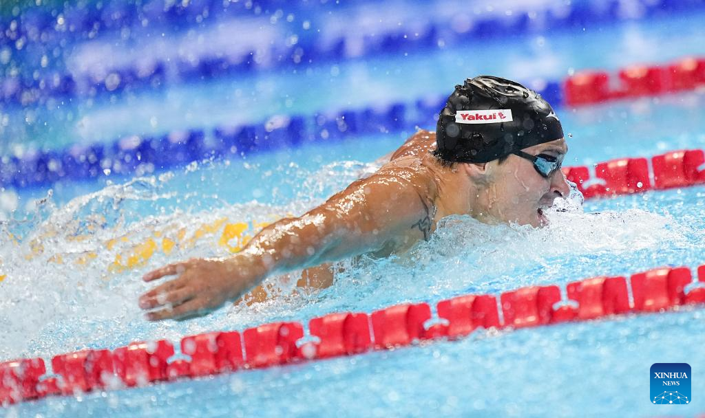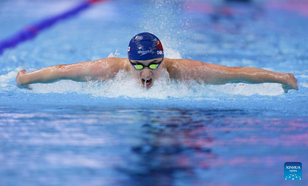 Chen Juner of China competes during the men's 200m butterfly final of swimming at the World Aquatics Championships in Singapore, July 30, 2025. (Xinhua/Xia Yifang)