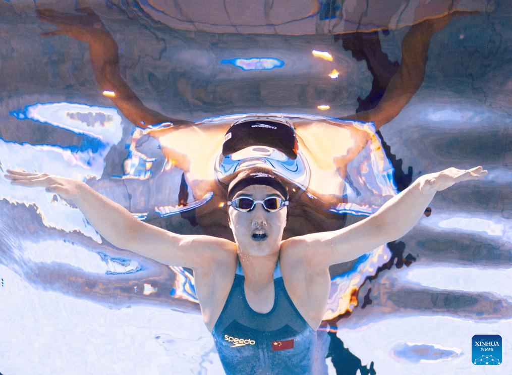 Team China's Zhang Yufei competes during the mixed 4x100m medley relay final of swimming at the World Aquatics Championships in Singapore, July 30, 2025. (Xinhua/Wu Zhizun)