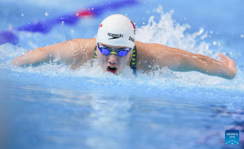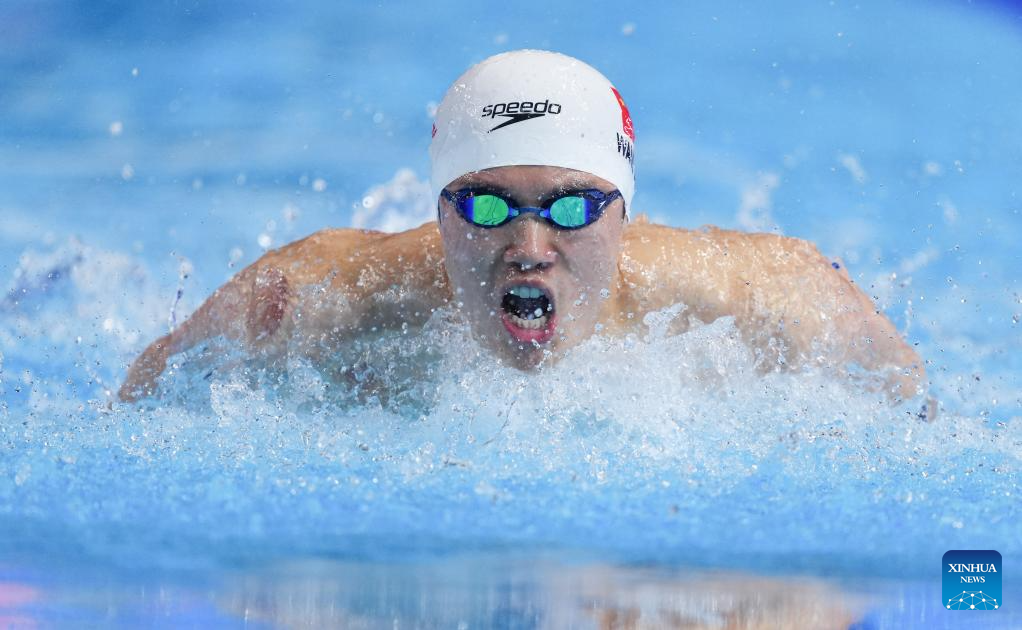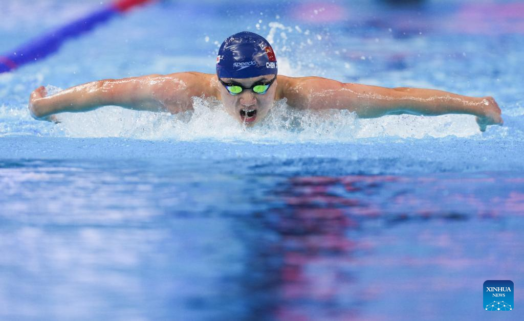 Chen Juner of China competes during the men's 200m butterfly final of swimming at the World Aquatics Championships in Singapore, July 30, 2025. (Xinhua/Xue Yuge)