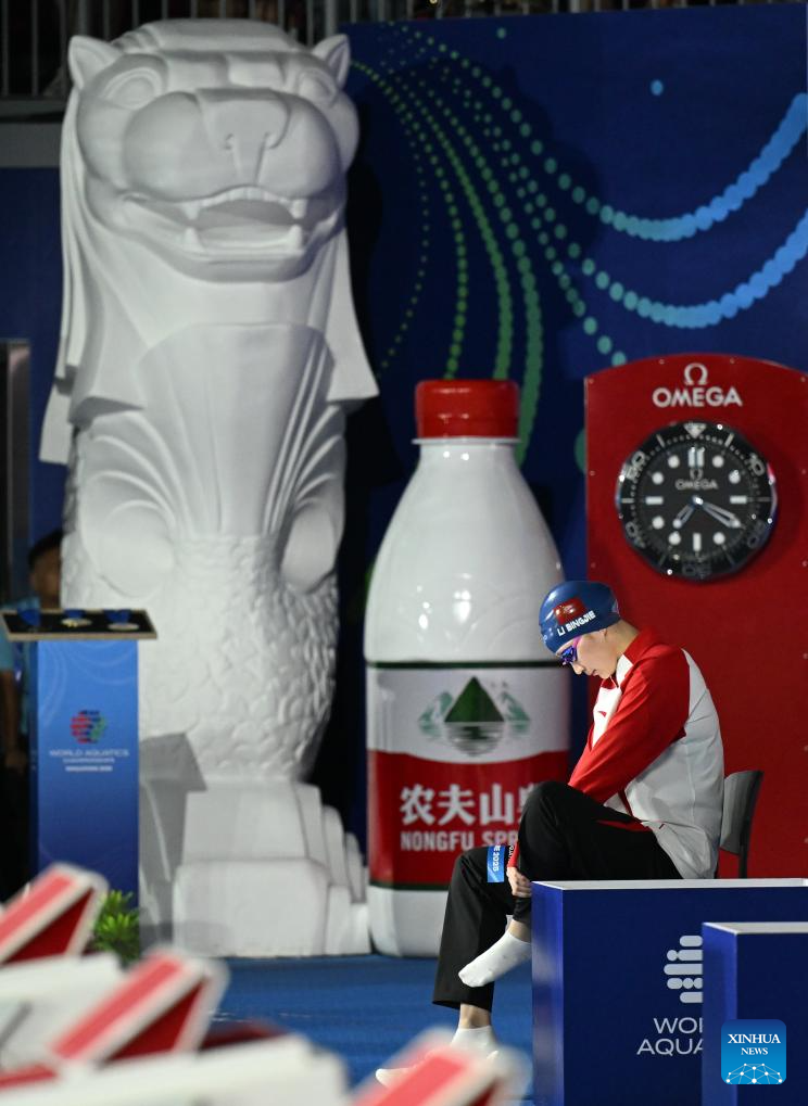 Qin Haiyang of China is seen before the men's 50m breaststroke final of swimming at the World Aquatics Championships in Singapore, July 30, 2025. (Xinhua/Xue Yuge)