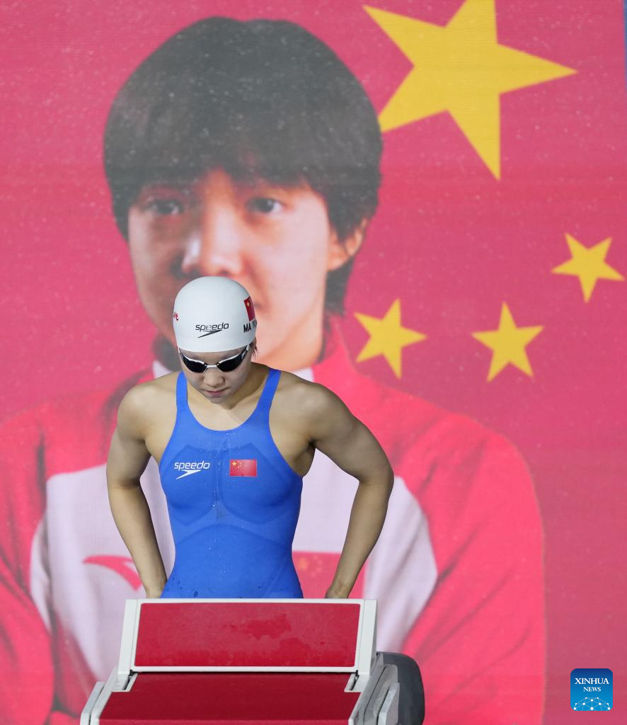 Ma Yonghui of China is seen before the women's 200m butterfly semifinal of swimming at the World Aquatics Championships in Singapore, July 30, 2025. (Xinhua/Wu Zhizun)