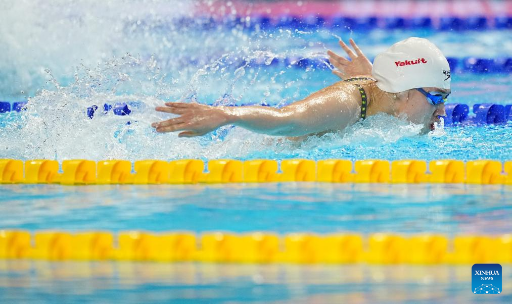 Ma Yonghui of China competes during the women's 200m butterfly semifinal of swimming at the World Aquatics Championships in Singapore, July 30, 2025. (Xinhua/Xue Yuge)