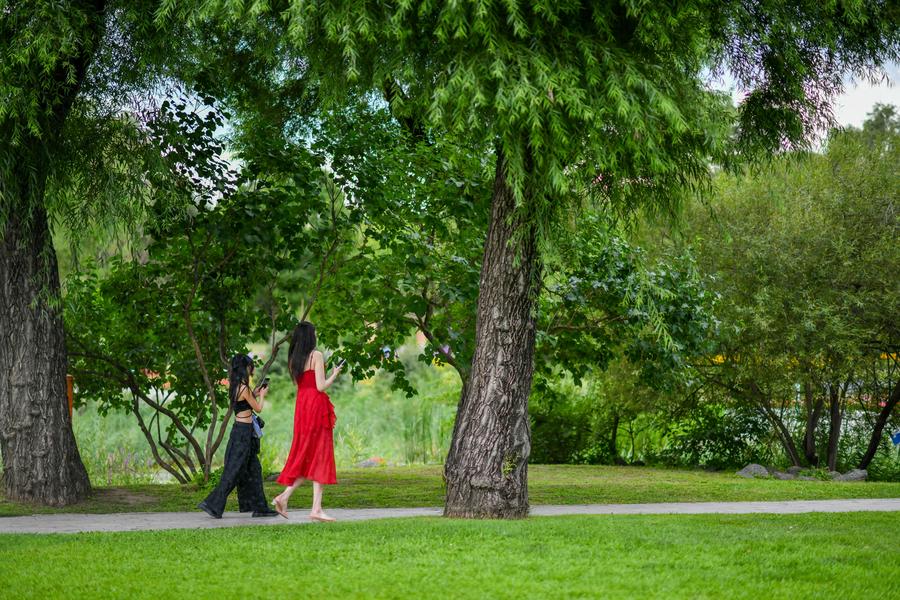 HARBIN, Aug. 2 (Xinhua) -- Located on the north bank of the Songhua River in Harbin, northeast China's Heilongjiang Province, the Taiyangdao (Sun Island) National Wetland Park has a wetland area of more than 7,000 hectares, with a high wetland rate of more than 70 percent. The Sun Island Scenic Area within the park is one of the few riverfront wetland grassland ecological zones lying in the city center in China.