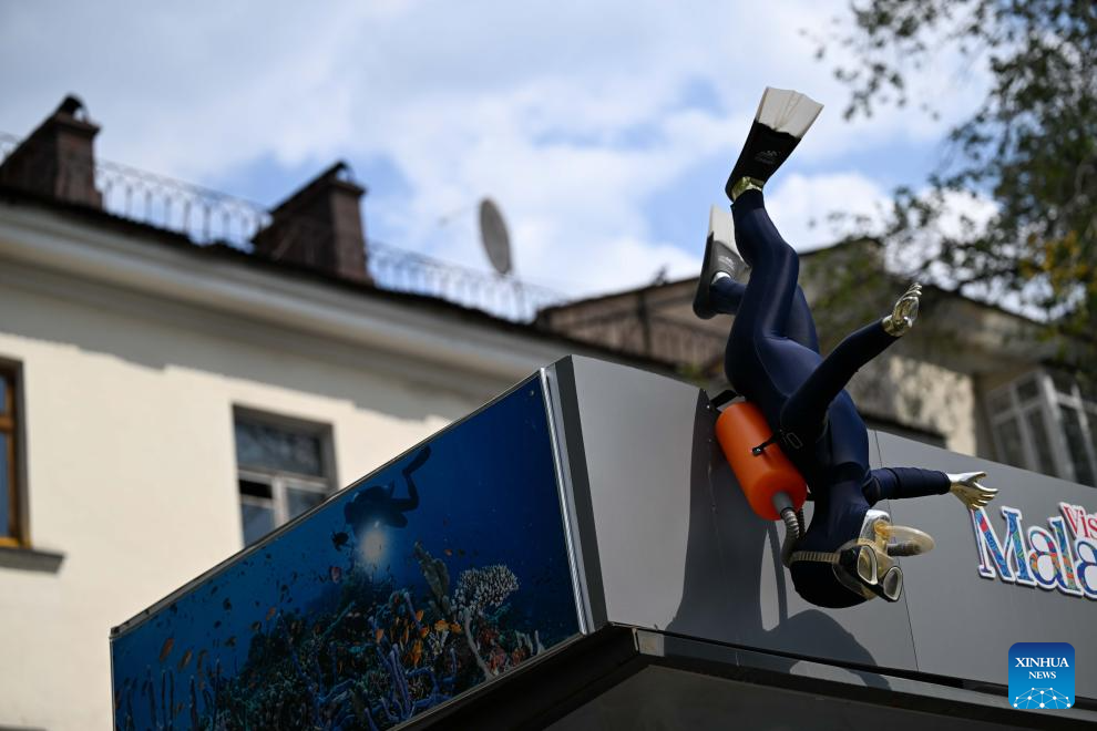 A street-side tourism advertisement is seen in Almaty, Kazakhstan, on Aug. 3, 2025. (Xinhua/Li Renzi)