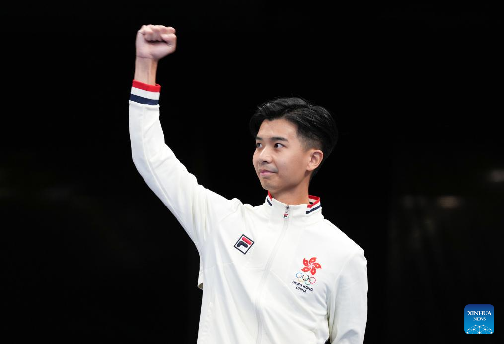 Gold medalist Yeung Chung Hei of China's Hong Kong reacts during the awarding ceremony for the men's Taijiquan-Taijijian final of Wushu event at The World Games 2025 in Chengdu, southwest China's Sichuan Province, Aug. 9, 2025. (Xinhua/Xu Suhui)