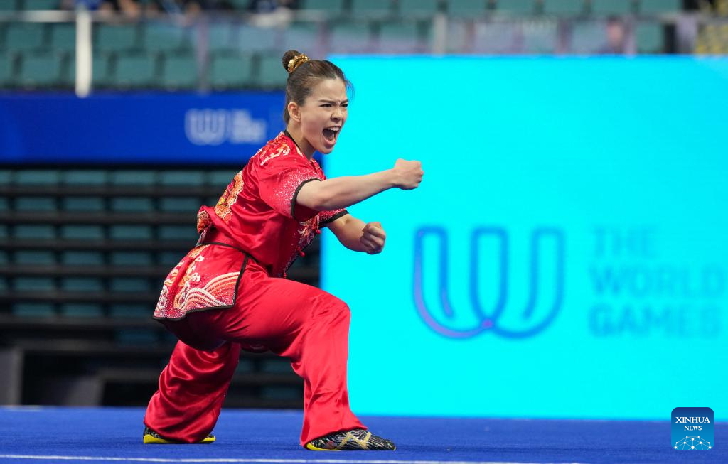 Darya Latisheva of Uzbekistan competes during the women's Nanquan-Nandao final of Wushu event at The World Games 2025 in Chengdu, southwest China's Sichuan Province, Aug. 9, 2025. (Xinhua/Xu Suhui)