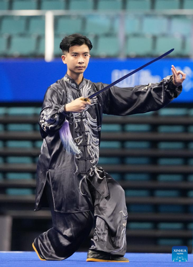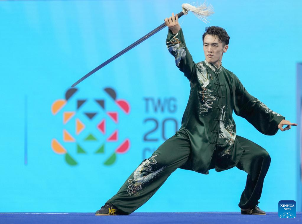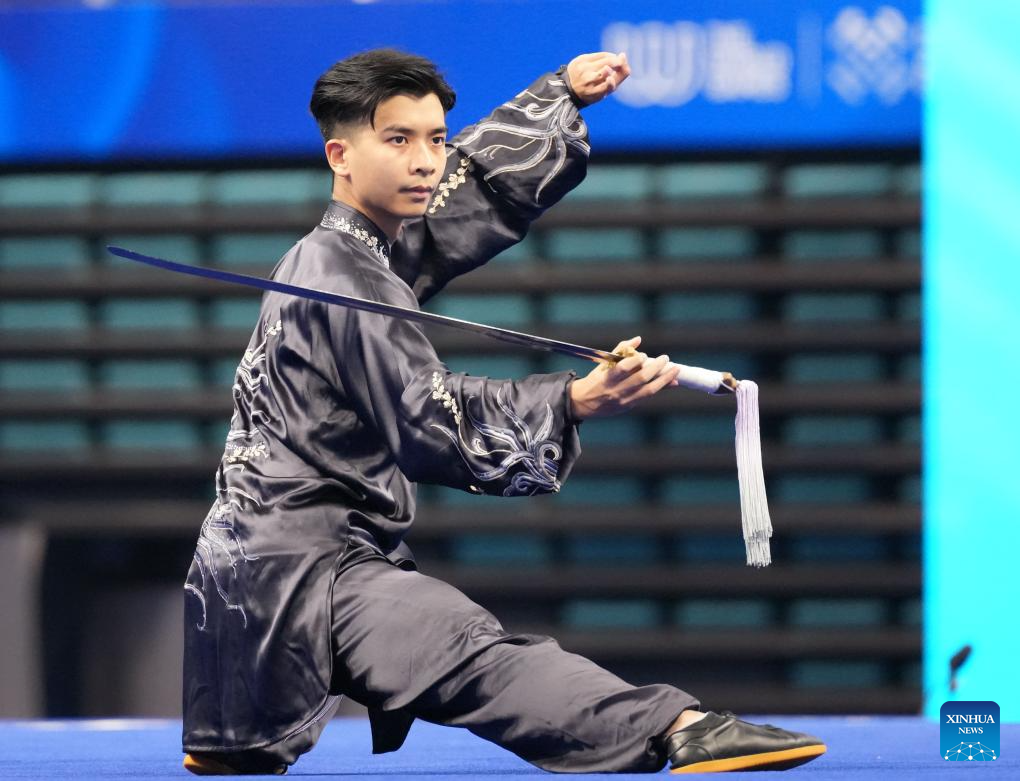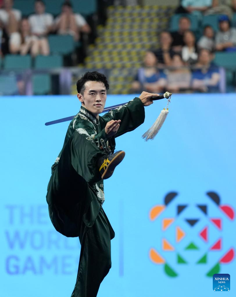 Yeung Chung Hei of China's Hong Kong competes during the men's Taijiquan-Taijijian final of Wushu event at The World Games 2025 in Chengdu, southwest China's Sichuan Province, Aug. 9, 2025. (Xinhua/Xu Suhui)