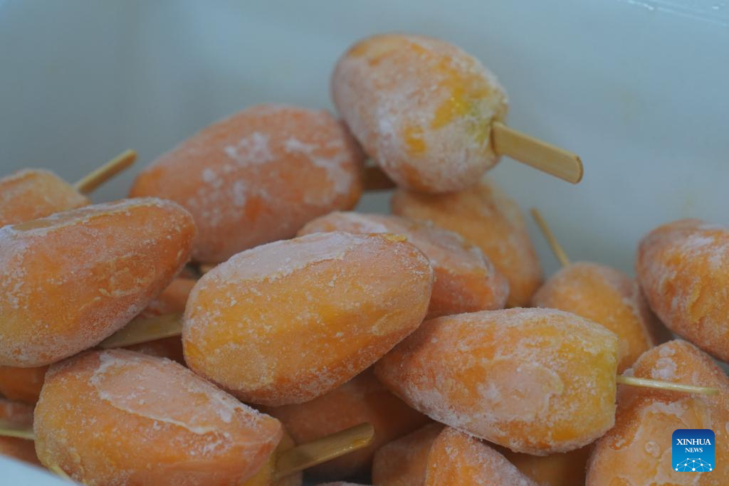 Mango-flavored ice pops are pictured at a mango processing company in Tiandong County of Baise, south China's Guangxi Zhuang Autonomous Region, July 23, 2025. (Xinhua/Zhao Huan)