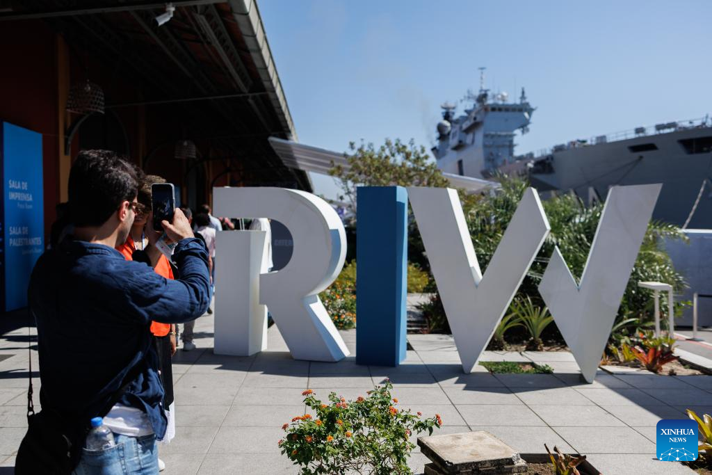A visitor takes photos in front of the sign of the Rio Innovation Week in Rio de Janeiro, Brazil, on Aug. 13, 2025. (Photo by Claudia Martini/Xinhua)
