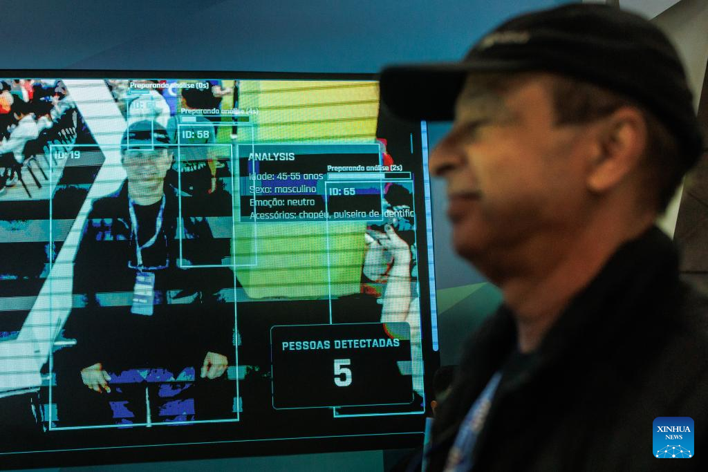 A visitor experiences facial recognition technology during Rio Innovation Week in Rio de Janeiro, Brazil, on Aug. 13, 2025. (Photo by Claudia Martini/Xinhua)