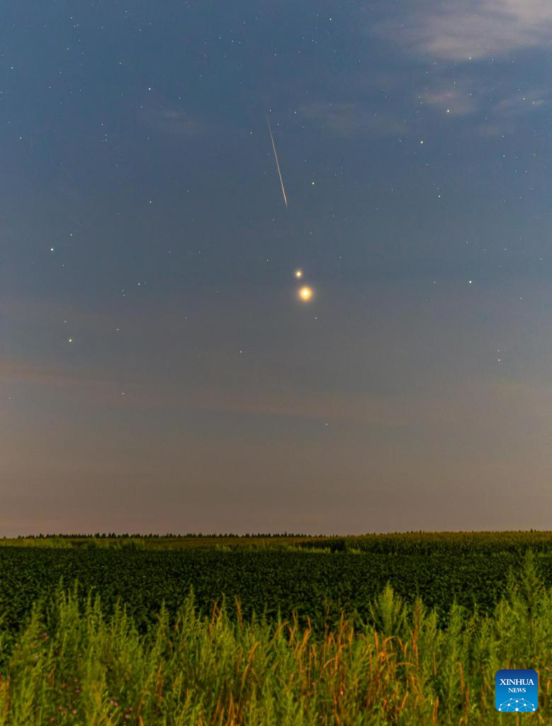 This photo taken on Aug. 13, 2025 shows Perseid meteor shower over Tangyuan County of Jiamusi City, northeast China's Heilongjiang Province.