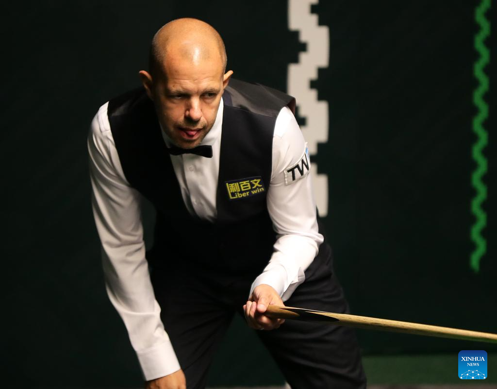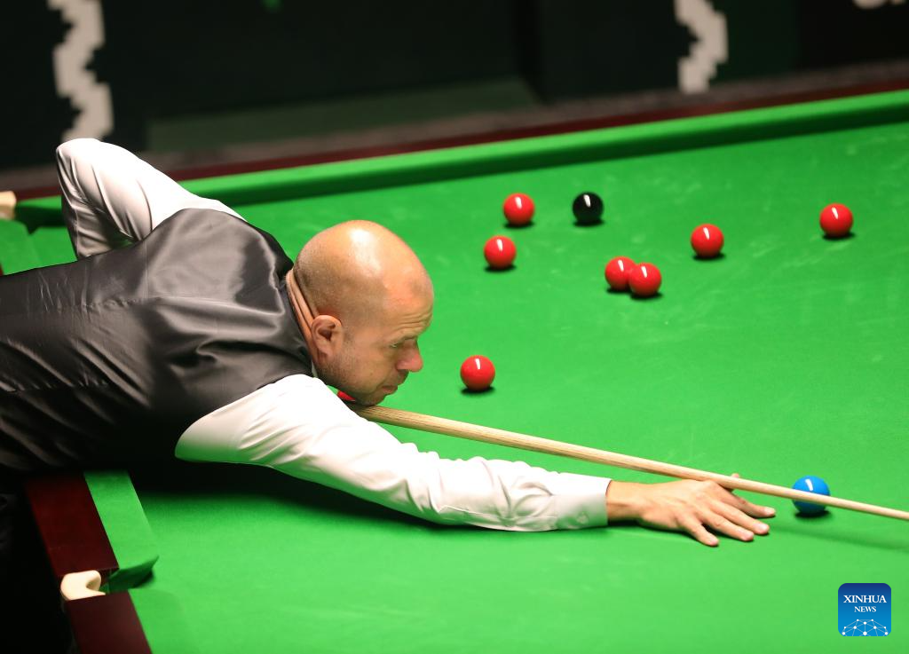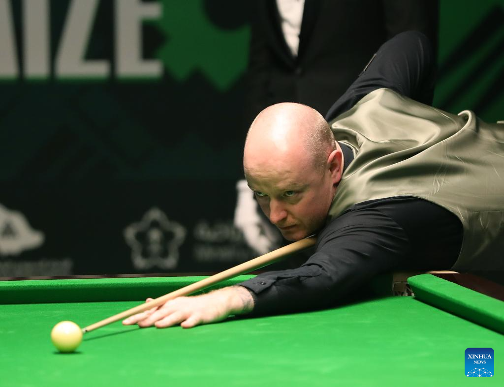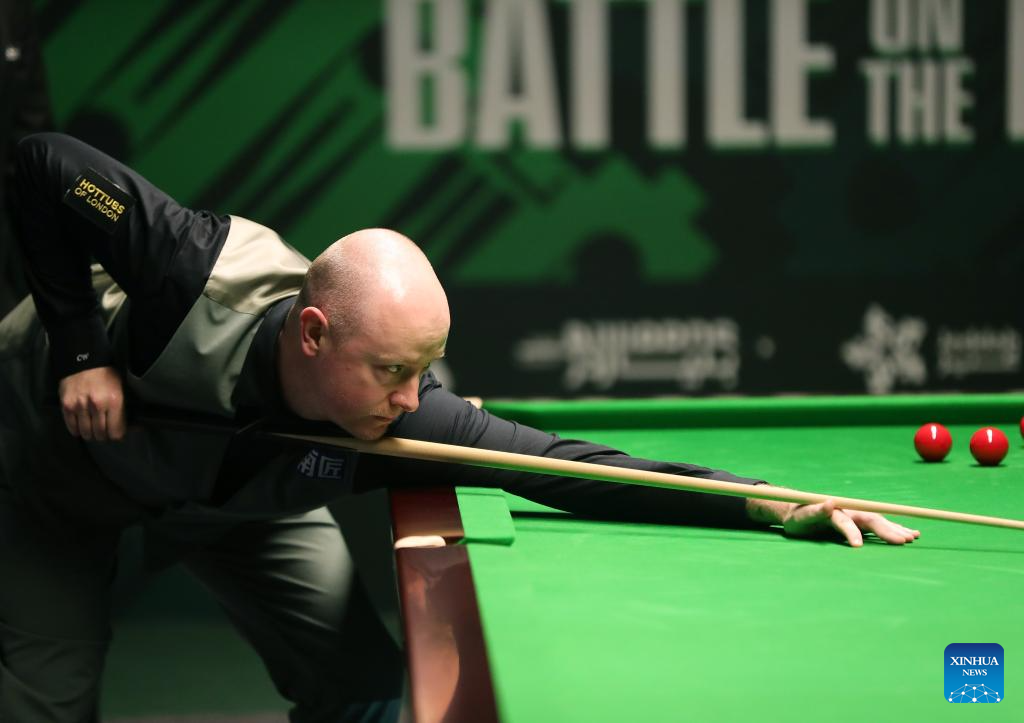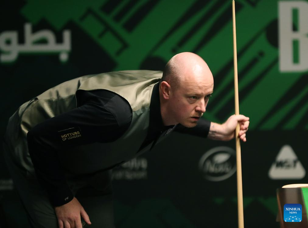 Barry Hawkins of England competes during the round 6 match against Ding Junhui of China at the Saudi Arabia Snooker Masters 2025 in Jeddah, Saudi Arabia, Aug. 13, 2025. (Xinhua/Wang Dongzhen)