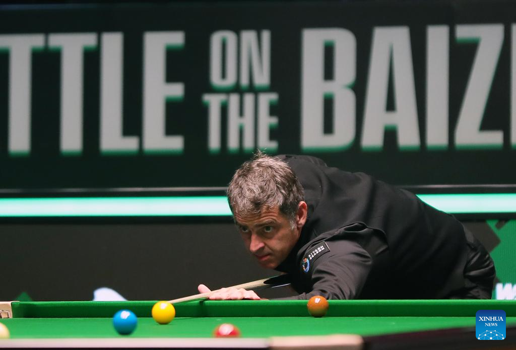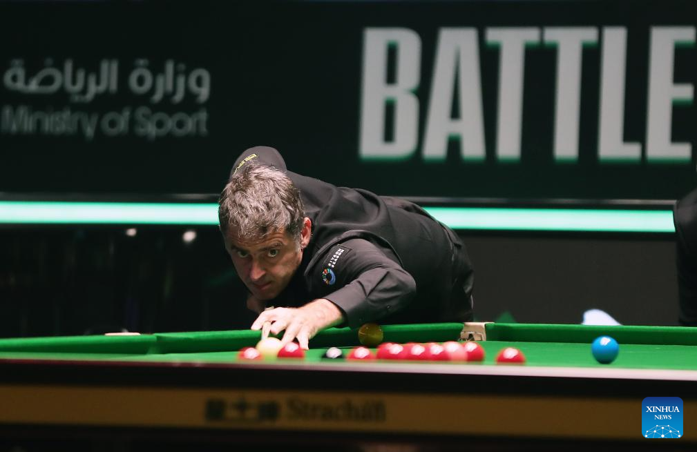 Ronnie O'Sullivan of England competes during the round 6 match against Chang Bingyu of China at the Saudi Arabia Snooker Masters 2025 in Jeddah, Saudi Arabia, Aug. 13, 2025. (Xinhua/Wang Dongzhen)