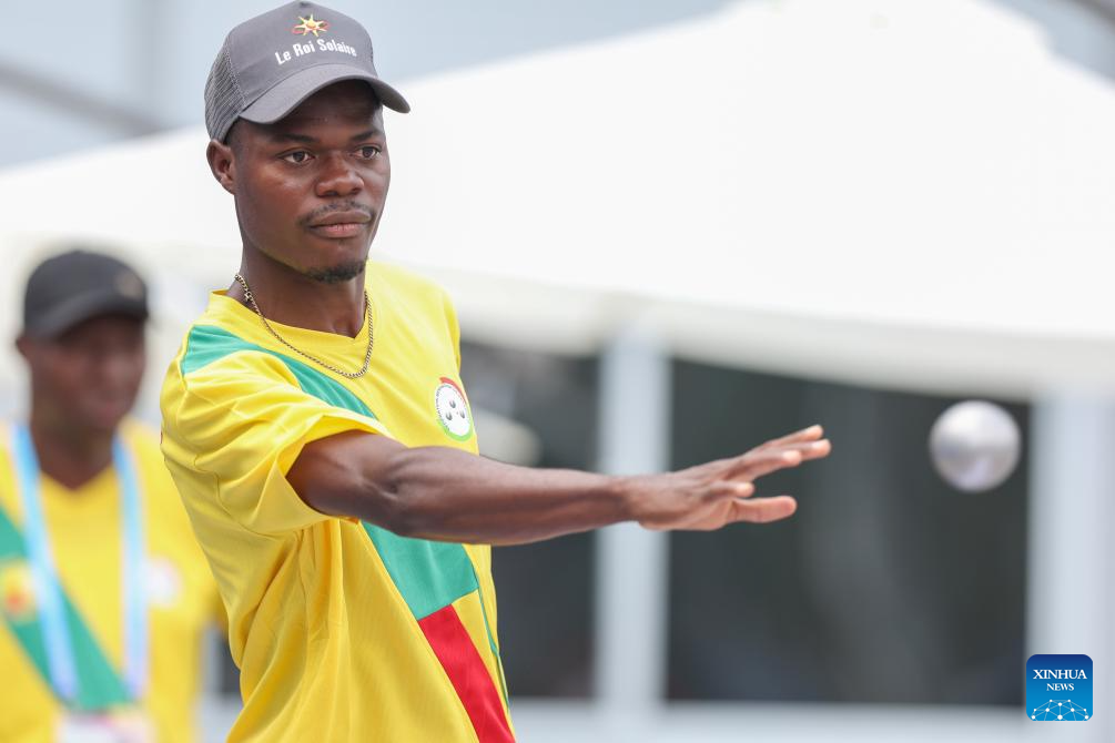 Marcel Gbetable of Benin competes during the Boules Sports Men's Petanque Precision Shooting Gold Medal Match against Andrea Chiapello of Italy at The World Games 2025 in Chengdu, southwest China's Sichuan Province, Aug. 16, 2025. (Xinhua/Zhang Liyun)