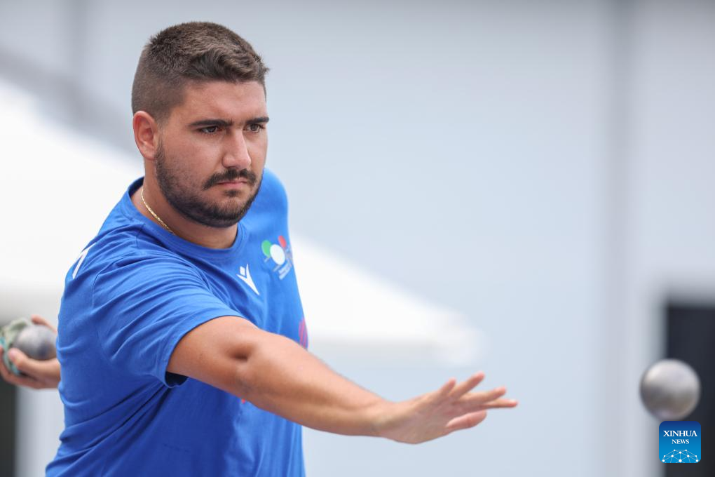 Andrea Chiapello of Italy competes during the Boules Sports Men's Petanque Precision Shooting Gold Medal Match against Marcel Gbetable of Benin at The World Games 2025 in Chengdu, southwest China's Sichuan Province, Aug. 16, 2025. (Xinhua/Zhang Liyun)