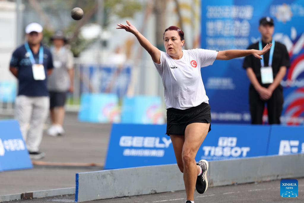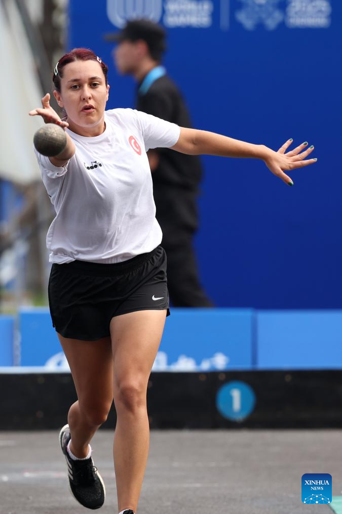 Inci Ozturk of Türkiye competes during the Boules Sports Women's Lyonnaise Progressive Semifinal Match against Jacqueline Kosir of Slovenia at The World Games 2025 in Chengdu, southwest China's Sichuan Province, Aug. 17, 2025. (Xinhua/Chen Bin)