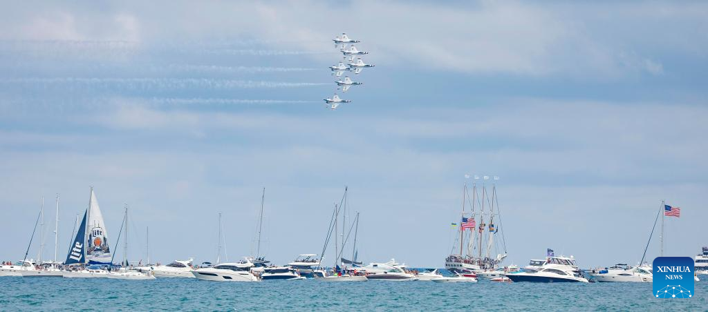 The U.S. Air Force Air Demonstration Squadron, known as the "Thunderbirds," performs during the 2025 Chicago Air and Water Show in Chicago, the United States, Aug. 17, 2025. (Photo by Joel Lerner/Xinhua)