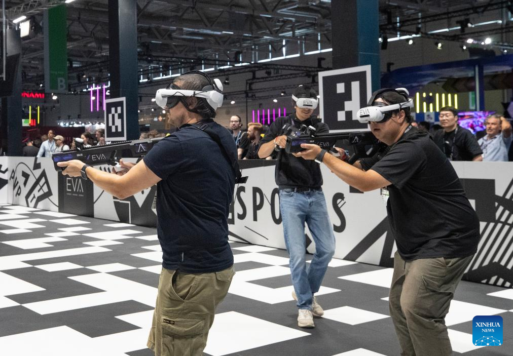 People visit Gamescom 2025 in Cologne, Germany, on Aug. 20, 2025. Gamescom 2025, one of the world's largest trade fairs for computer and video games, kicked off here on Wednesday with a record 1,500 exhibitors, highlighting both the industry's global reach and the growing footprint of Chinese developers. (Xinhua/Zhang Fan)