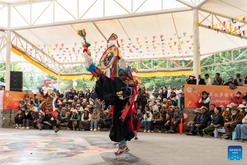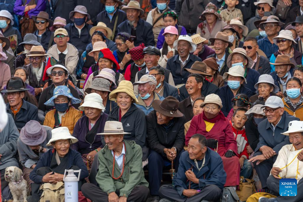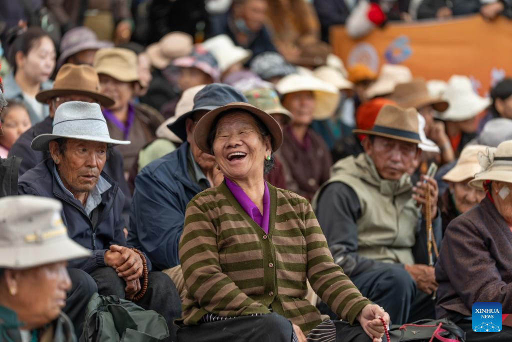 People watch Tibetan opera performances in Lhasa, southwest China's Xizang Autonomous Region, Aug. 24, 2025. Tibetan opera performances are staged here from Aug. 23 to 27 in celebration of the traditional Shoton Festival, or Yogurt Festival, and the autonomous region's 60th founding anniversary. (Xinhua/Tenzing Nima Qadhup)