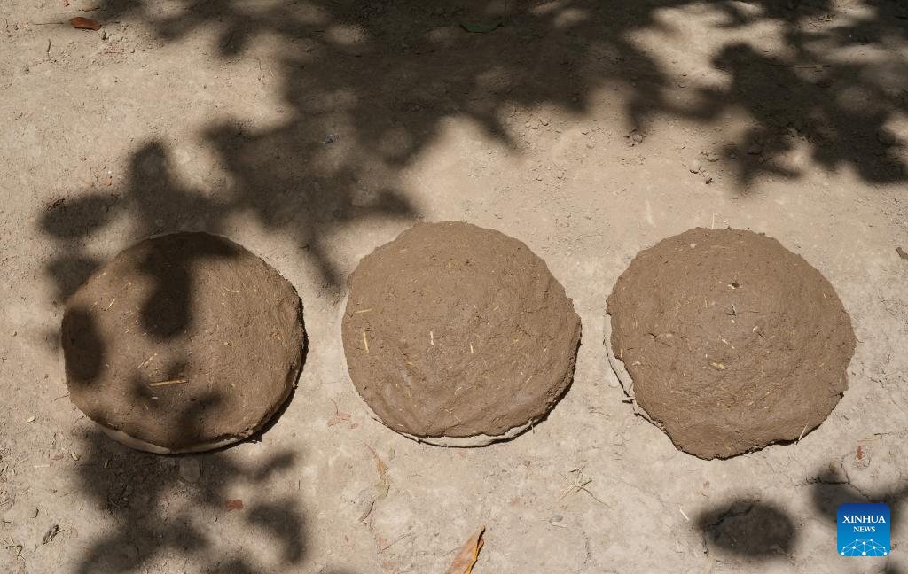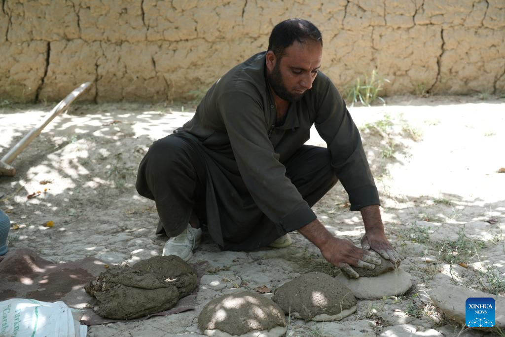 A villager uses finished Kangana jars as molds to shape bowls for new ones in the northern outskirts of Kabul, the capital of Afghanistan, Aug. 25, 2025. The Kangana, an ancient clay jar to preserve grapes, has been widely used in the rural outskirts north of Kabul. This century-old Afghan container enables grapes harvested in the heat of summer to stay fresh until the following spring.