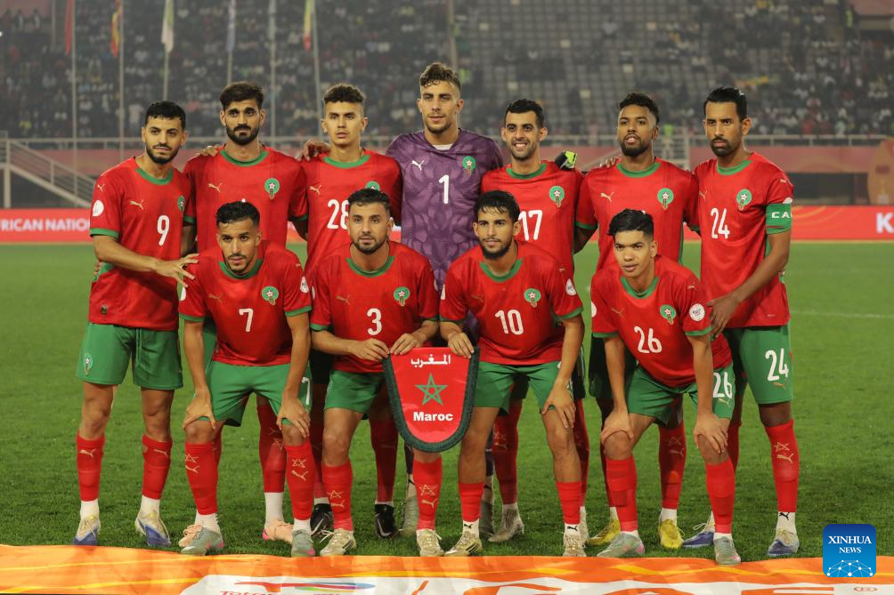 Starting players of Morocco line up before the semifinal match between Senegal and Morocco at the African Nations Championship (CHAN) 2024 at Mandela National Stadium in Kampala, capital of Uganda, on Aug. 26, 2025. (Photo by Hajarah Nalwadda/Xinhua)
