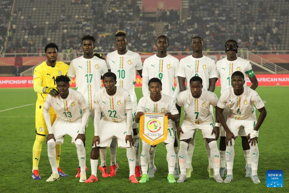 Starting players of Senegal line up before the semifinal match between Senegal and Morocco at the African Nations Championship (CHAN) 2024 at Mandela National Stadium in Kampala, capital of Uganda, on Aug. 26, 2025. (Photo by Hajarah Nalwadda/Xinhua)