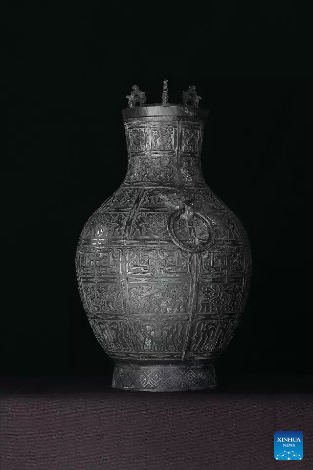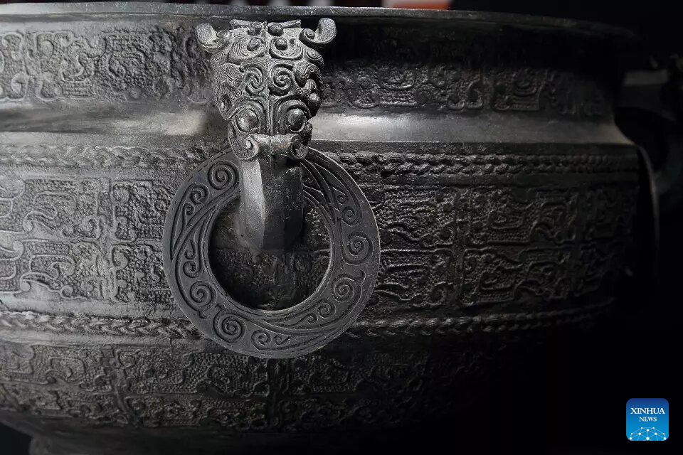Except for selling bronze ware artworks according to orders, their workshop today also cooperates with museums to repair and replicate cultural relics. Moreover, they also take part in important exhibitions and open classes on campus. "Making bronze wares is never an easy work, " said Ao Xinghua, "In hot summer, we have to stand for 10 hours beside the copper melting furnace which has a temperature of 1,200 to 1,600 degrees Celsius. " Due to its complicated making procedures, long production cycle, few learners and niche market, the craft of Lead-Tin Engraving is now facing great difficulty to develop and pass down. "Maybe one day we can only see bronze wares in showcases of museums, " said Ao Xinghua, "and the future of the art depends on whether the younger generations see its values." (Xinhua/Du Zixuan)