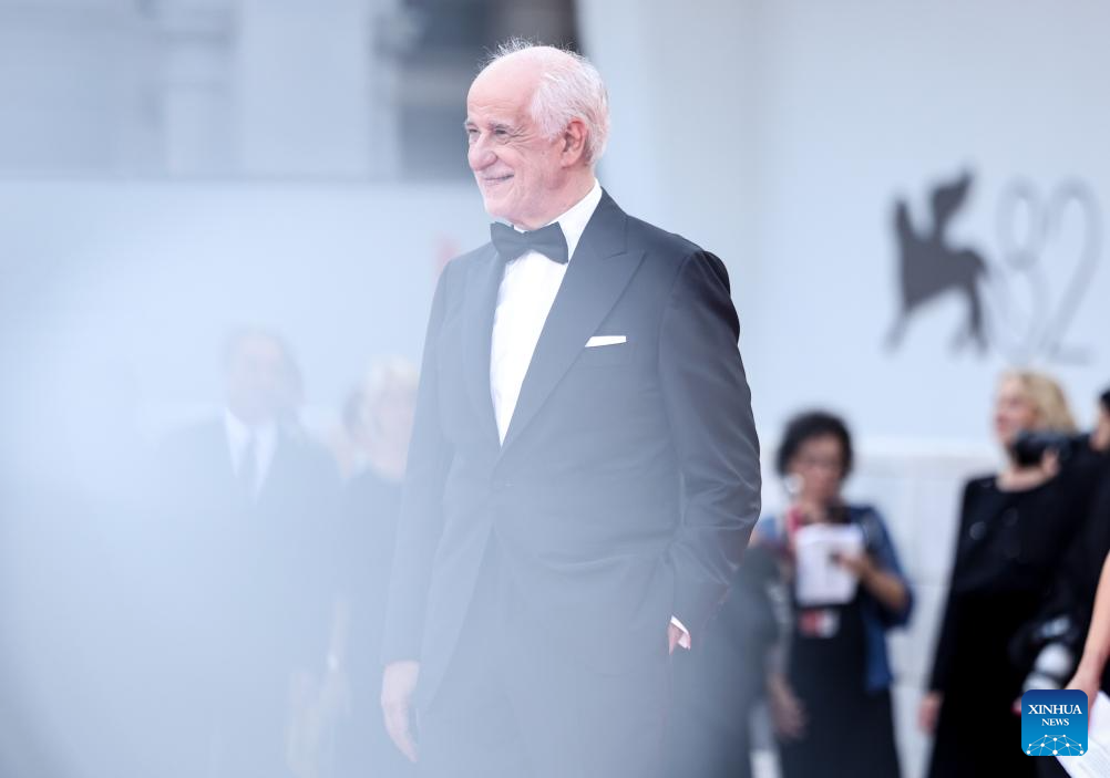 Italian actor Toni Servillo of the film "La Grazia" arrives at the red carpet of the opening ceremony of the 82nd Venice Film Festival in Venice, Italy, Aug. 27, 2025. The 82nd Venice Film Festival opened Wednesday on Lido island in Venice, Italy, with 21 films competing for the Golden Lion award. (Xinhua/Li Jing)