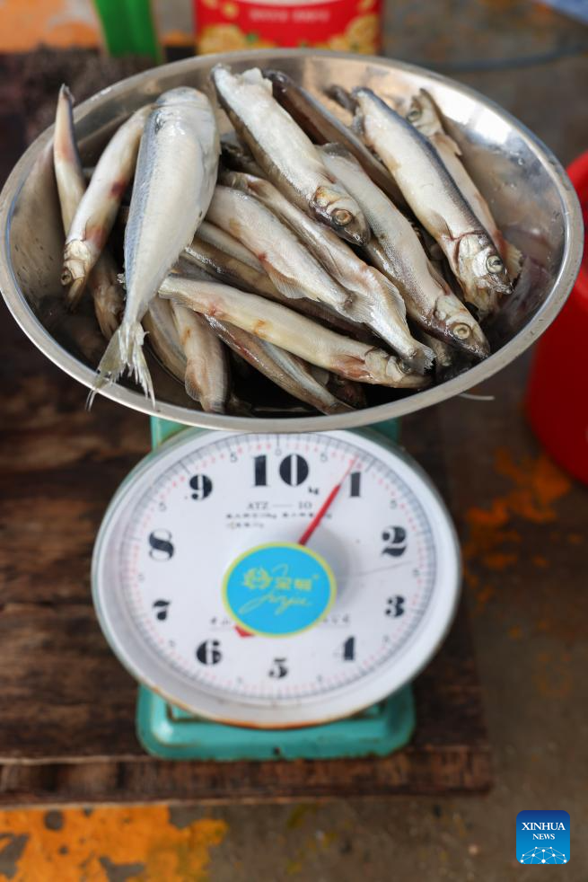 This photo taken on Sept. 8, 2025 shows food for dolphin "Wan Wan" at a rescue facility in Lingshui, south China's Hainan Province. The stranded dolphin "Wan Wan," rescued in Wanning, Hainan this June, has recovered well after nearly three months of care by a rescue team. The dolphin is expected to be released back into the wild in the short future. (Xinhua/Zhang Liyun)