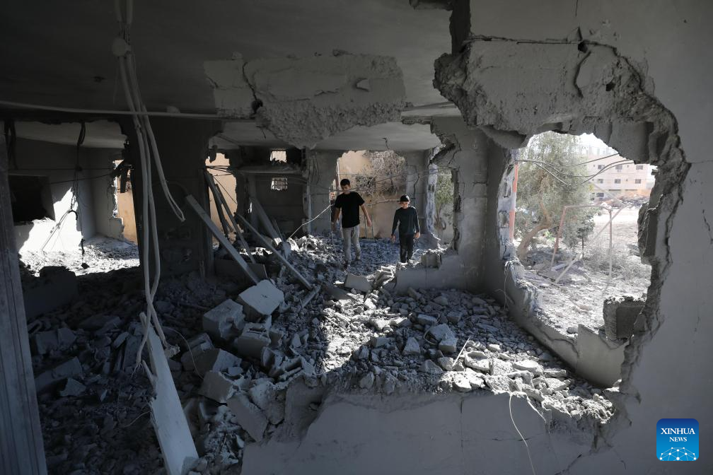 Palestinians inspect a destroyed house after the Israeli forces blew it up, in the West Bank city of Tubas, on Sept. 10, 2025. (Photo by Nidal Eshtayeh/Xinhua)
