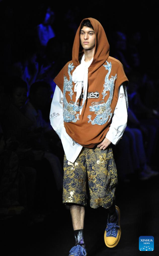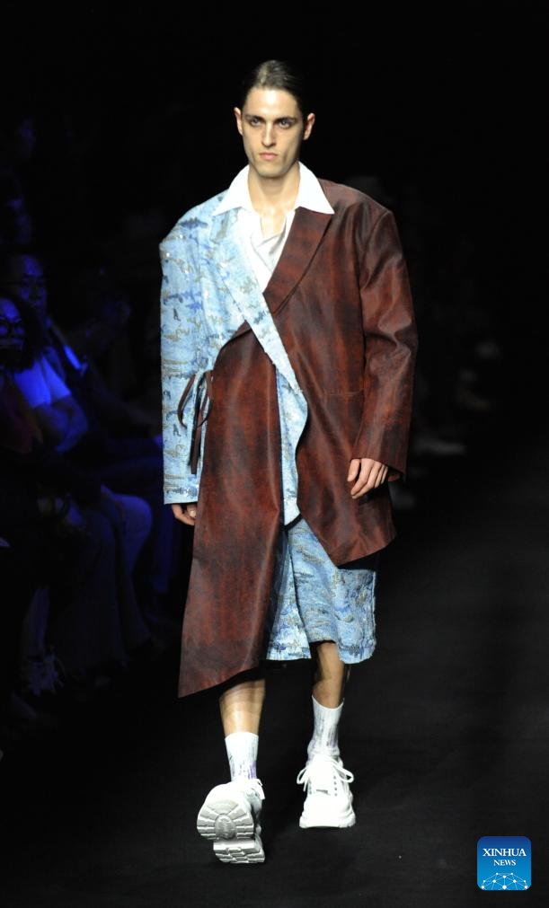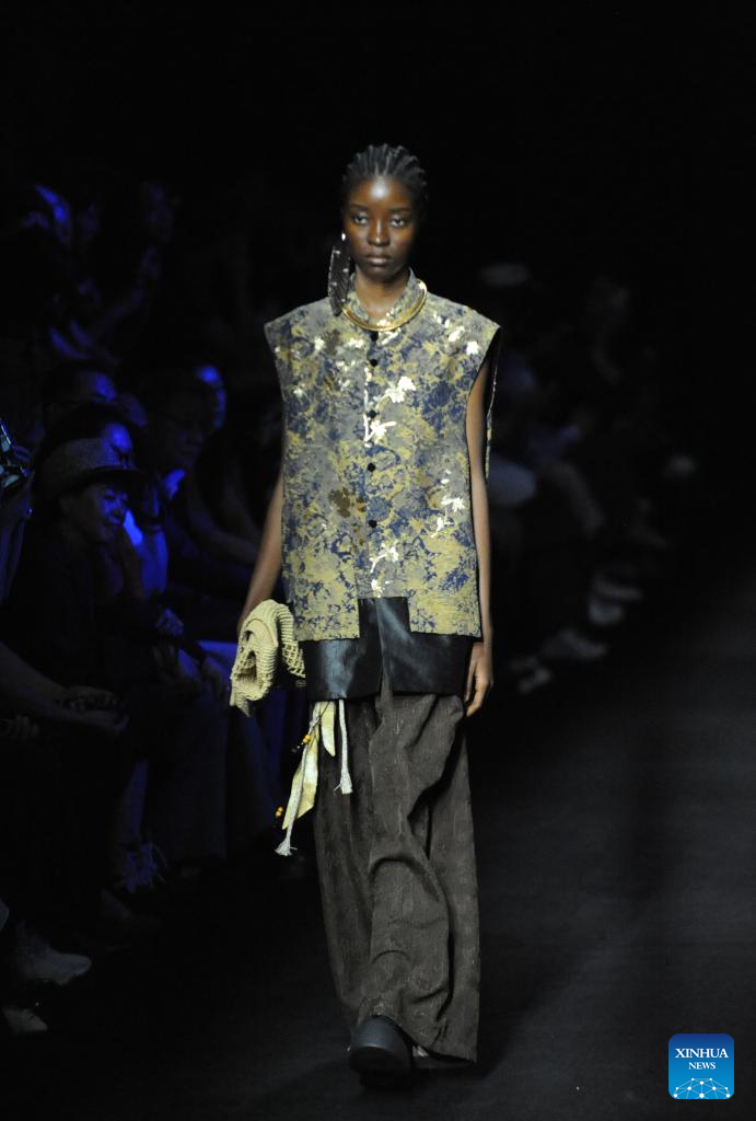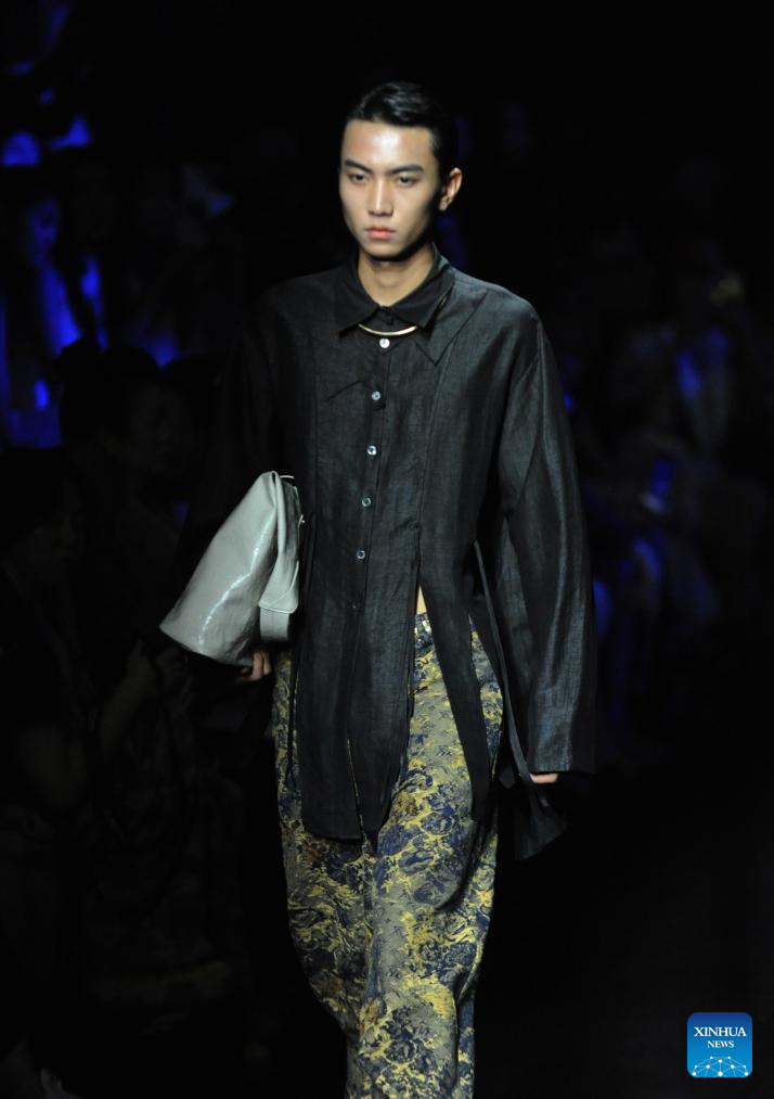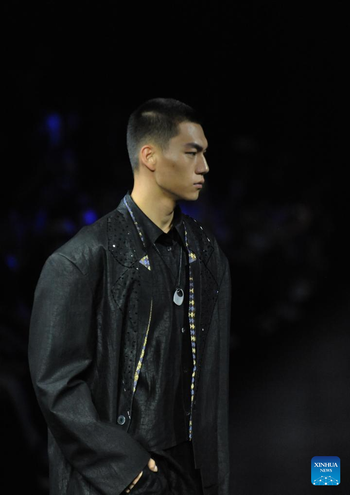 A model presents a creation by designer Huang Gang during the China Fashion Week in Beijing, capital of China, Sept. 13, 2025. (Xinhua/Wei Hai)