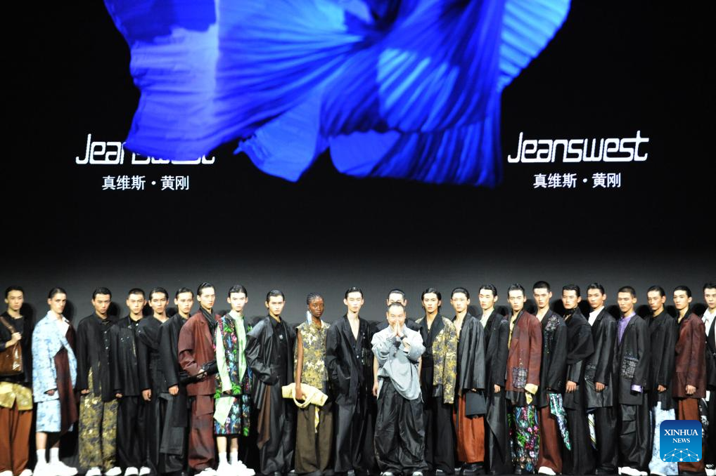 Designer Huang Gang and models pose during a curtain call during the China Fashion Week in Beijing, capital of China, Sept. 13, 2025. (Xinhua/Wei Hai)