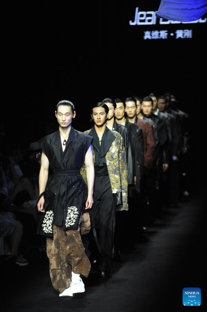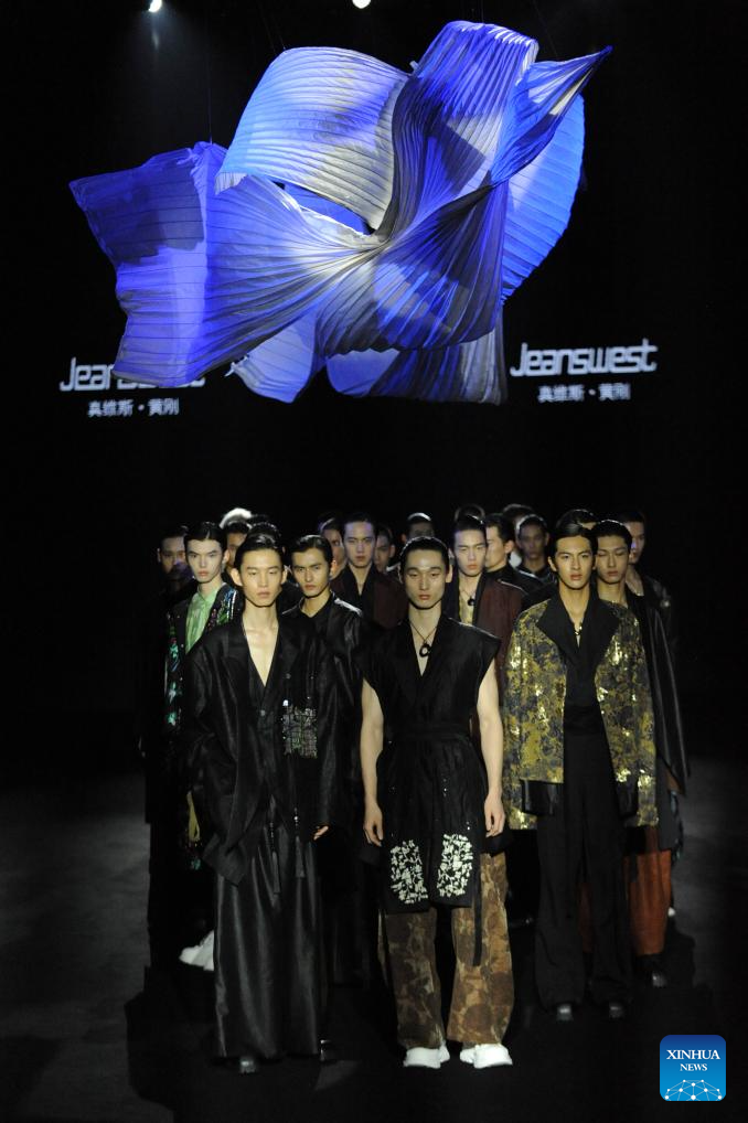 Models present creations by designer Huang Gang during the China Fashion Week in Beijing, capital of China, Sept. 13, 2025. (Xinhua/Wei Hai)