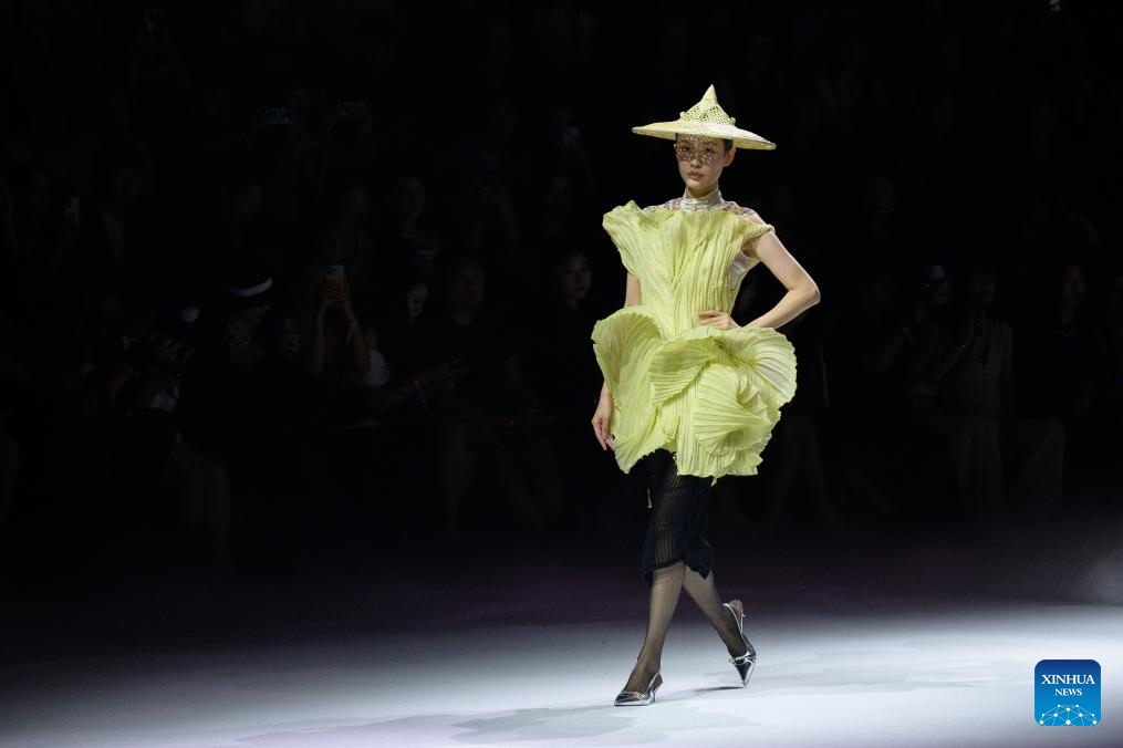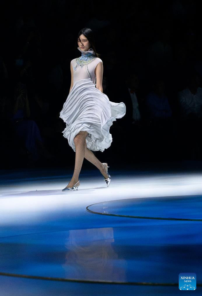 A model presents a creation at the closing show of the 2025 China Fashion Week (Autumn) in Beijing, capital of China, Sept. 14, 2025. (Xinhua/Hu Jingwen)