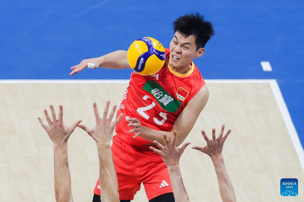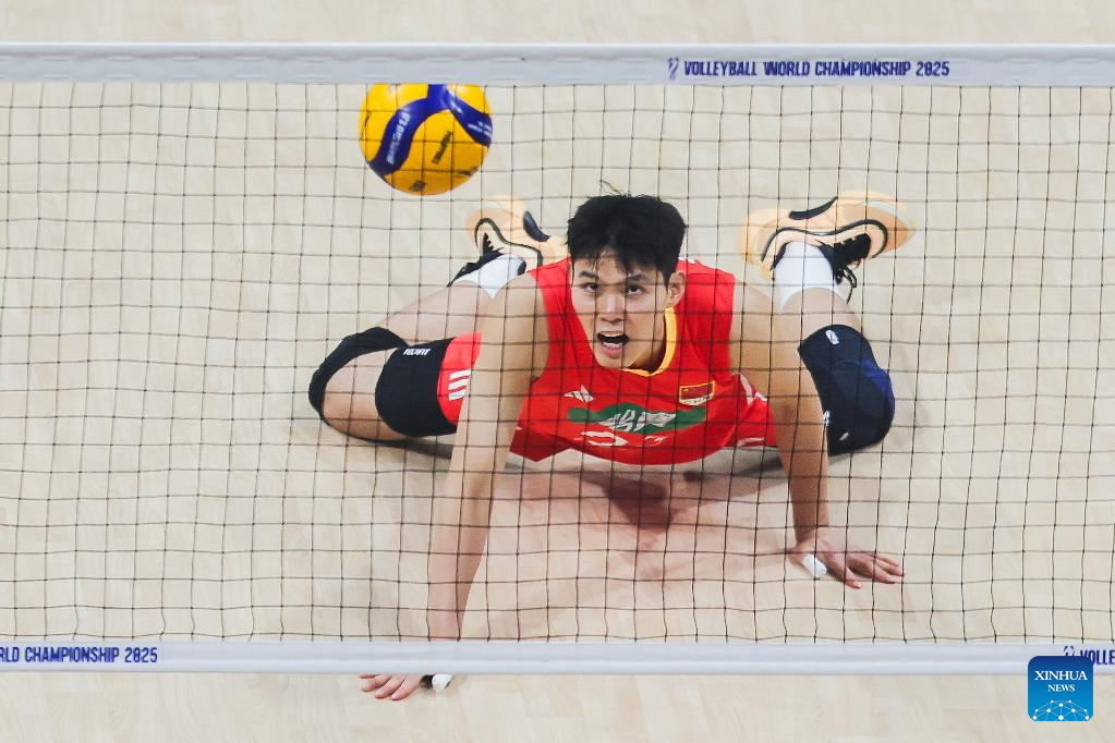 Liu Libin of China competes during the pool H match between China and Serbia at the FIVB Men's World Championship 2025 in Pasay City, the Philippines, on Sept. 16, 2025. (Xinhua/Rouelle Umali)