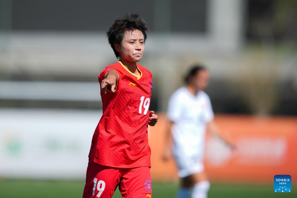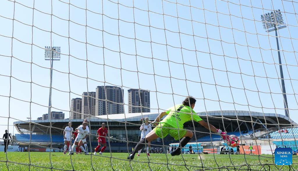 Zhang Linyan of Beijing Normal University reacts during the Women's Group B match between Beijing Normal University (CHN) and Laval University (CAN) at 2025 FISU University World Cup Football in Dalian, northeast China's Liaoning Province, on Sept. 18, 2025. (Xinhua/Zheng Huansong)
