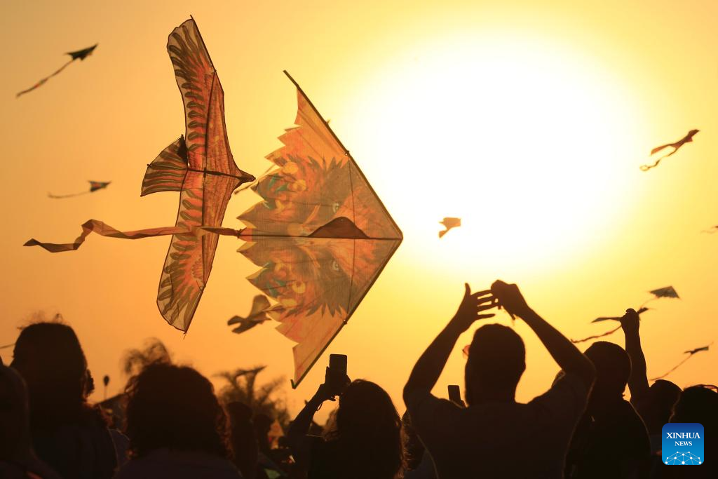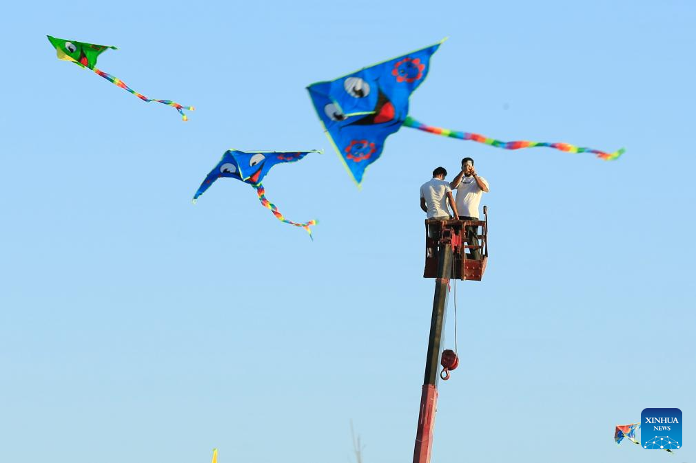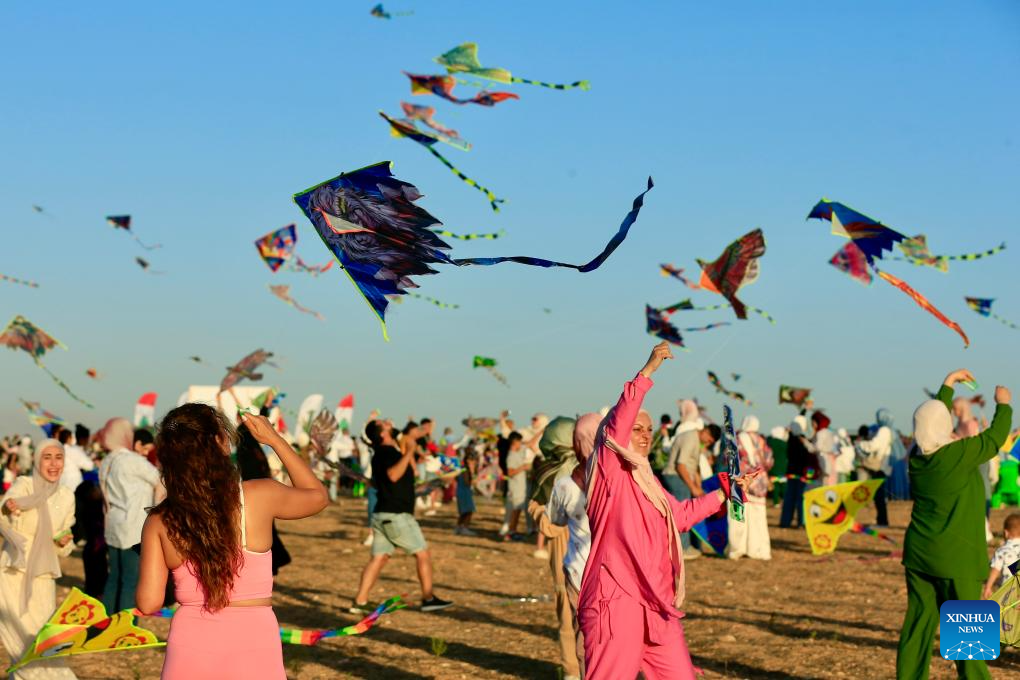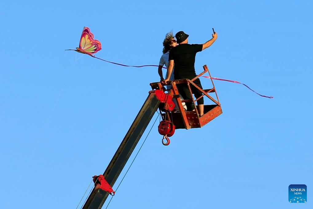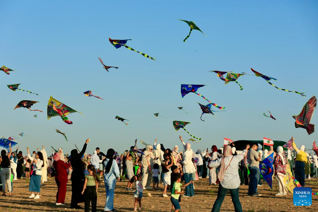 People fly kites during a kite festival in the town of Zrarieh, Lebanon, on Sept. 20, 2025. (Photo by Ali Hashisho/Xinhua)