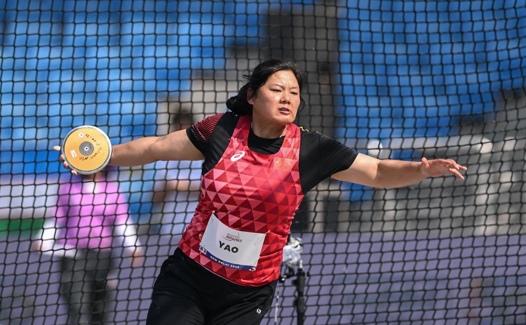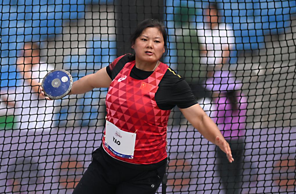 Yao Juan of China competes during the women's discus throw F44 final at World Para Athletics Championships 2025 in New Delhi, India, Sept. 29, 2025. (Xinhua/Javede Dar)