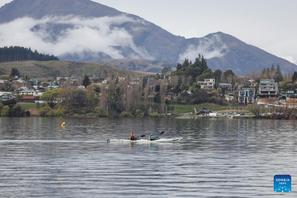 Tourists row a boat in Lake Wanaka on the South Island of New Zealand, Oct. 2, 2025. (Xinhua/Long Lei)