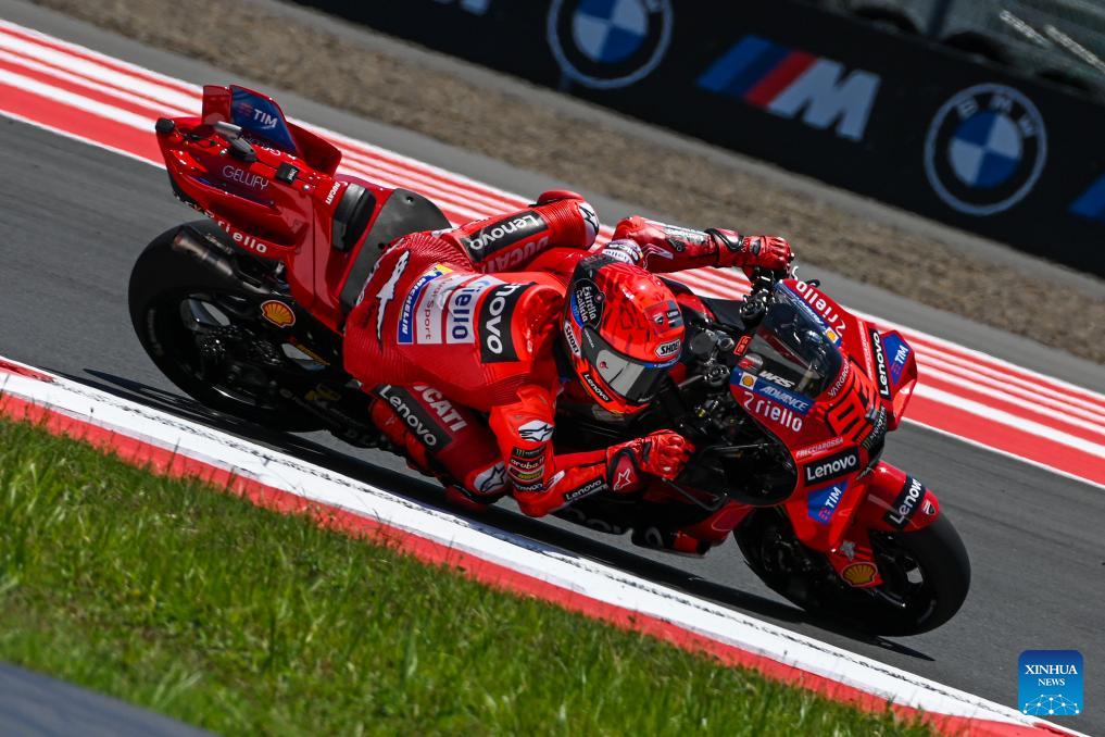 Marc Marquez of Ducati Lenovo Team competes during the free practice Nr. 1 of MotoGP at Pertamina Grand Prix of Indonesia 2025 in Lombok Island, Indonesia on Oct. 3, 2025. (Xinhua/Veri Sanovri)