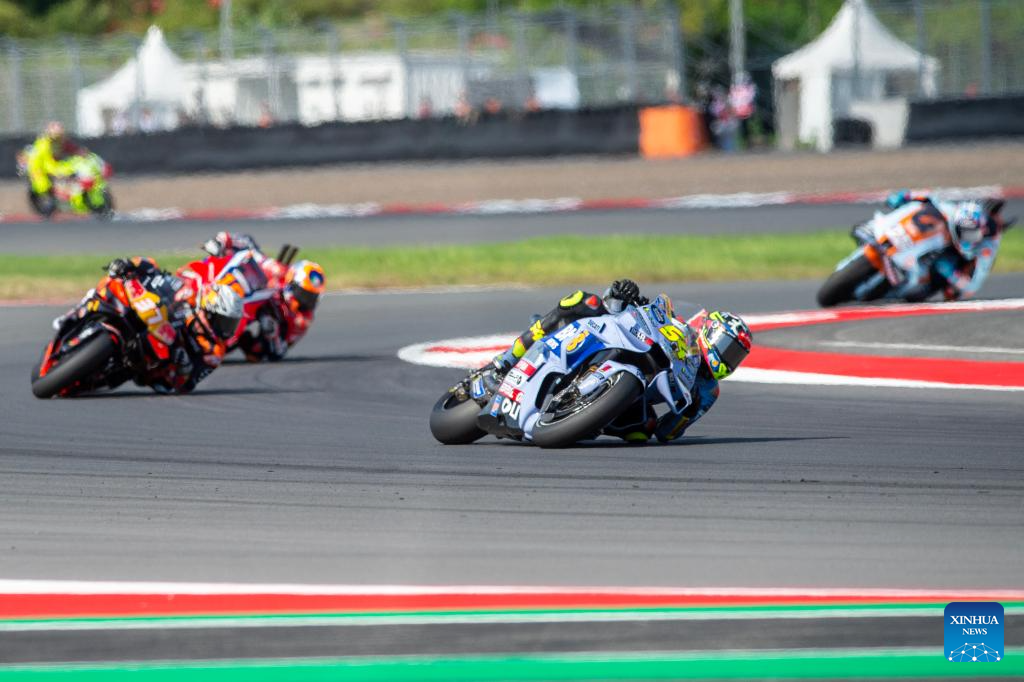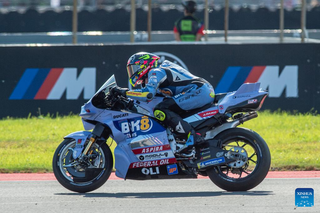BK8 Gresini Racing MotoGP's Spanish rider Fermin Aldeguer competes in the MotoGP race at the Pertamina Grand Prix of Indonesia 2025, held at the Pertamina Mandalika Circuit in Lombok Island, Indonesia, on Oct. 5, 2025. (Xinhua/Veri Sanovri)
