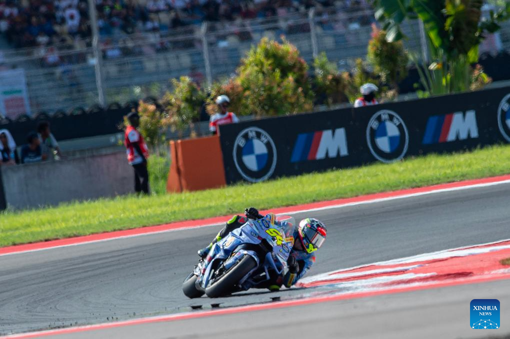 BK8 Gresini Racing MotoGP's Spanish rider Fermin Aldeguer competes in the MotoGP race at the Pertamina Grand Prix of Indonesia 2025, held at the Pertamina Mandalika Circuit in Lombok Island, Indonesia, on Oct. 5, 2025. (Xinhua/Cen Yunpeng)